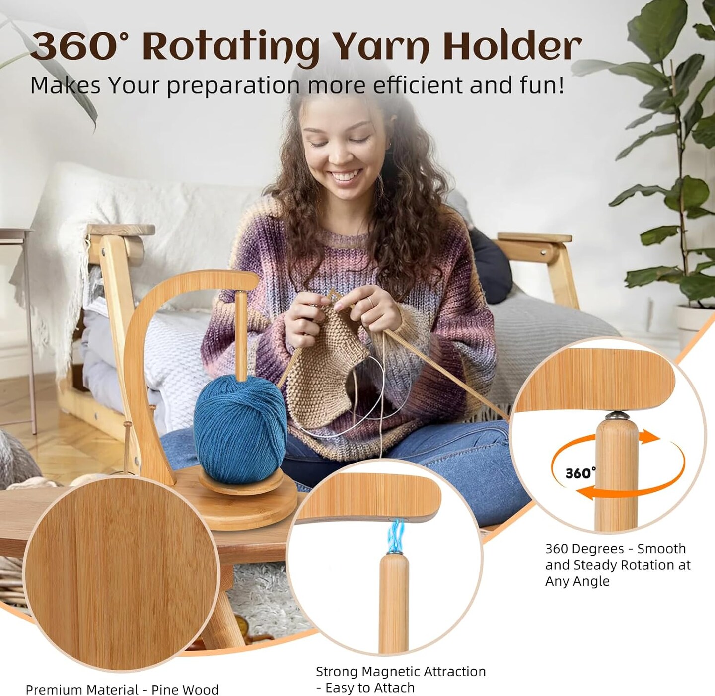 Wooden Yarn Holder for Knitting and Crocheting, Magnetic Crochet Yarn Holder