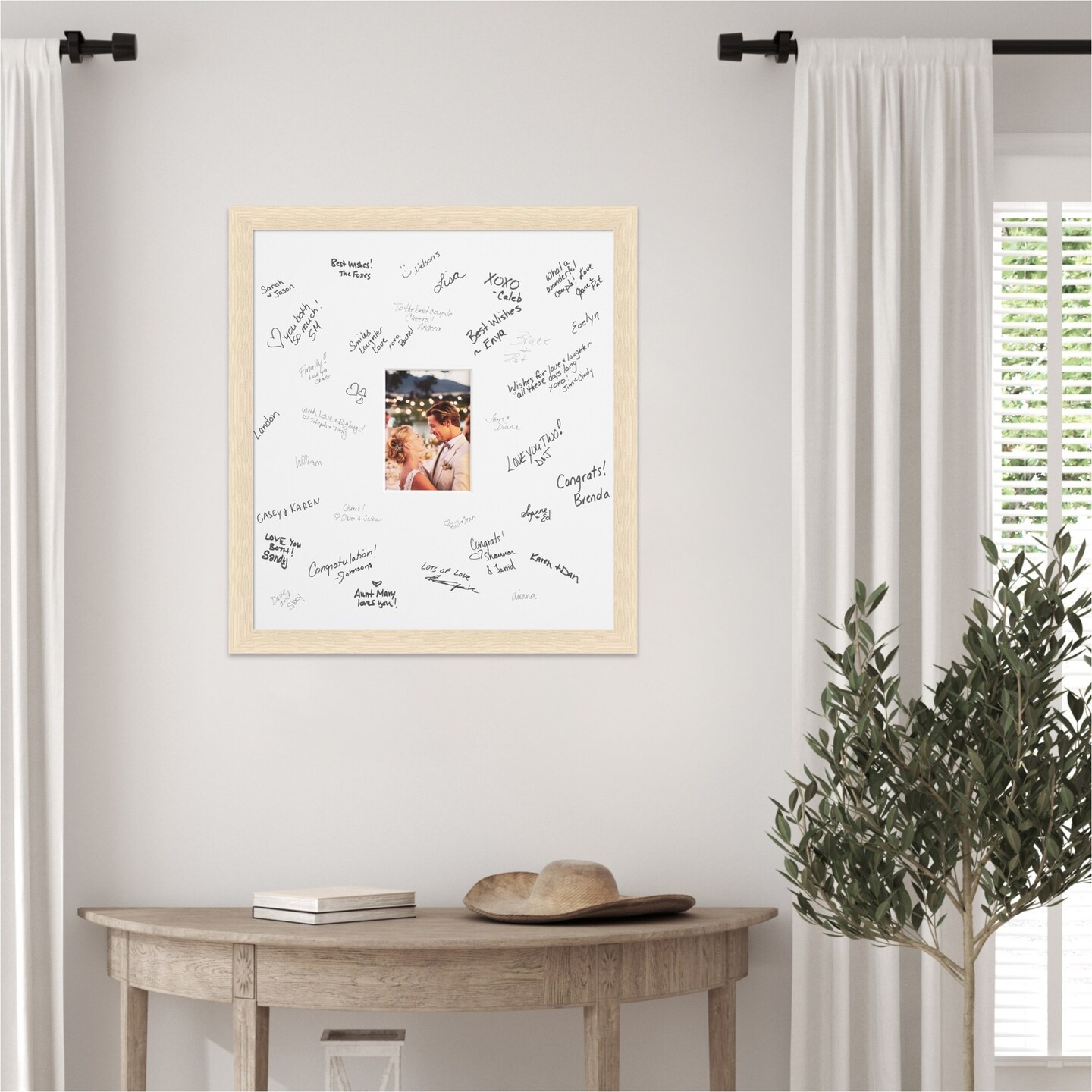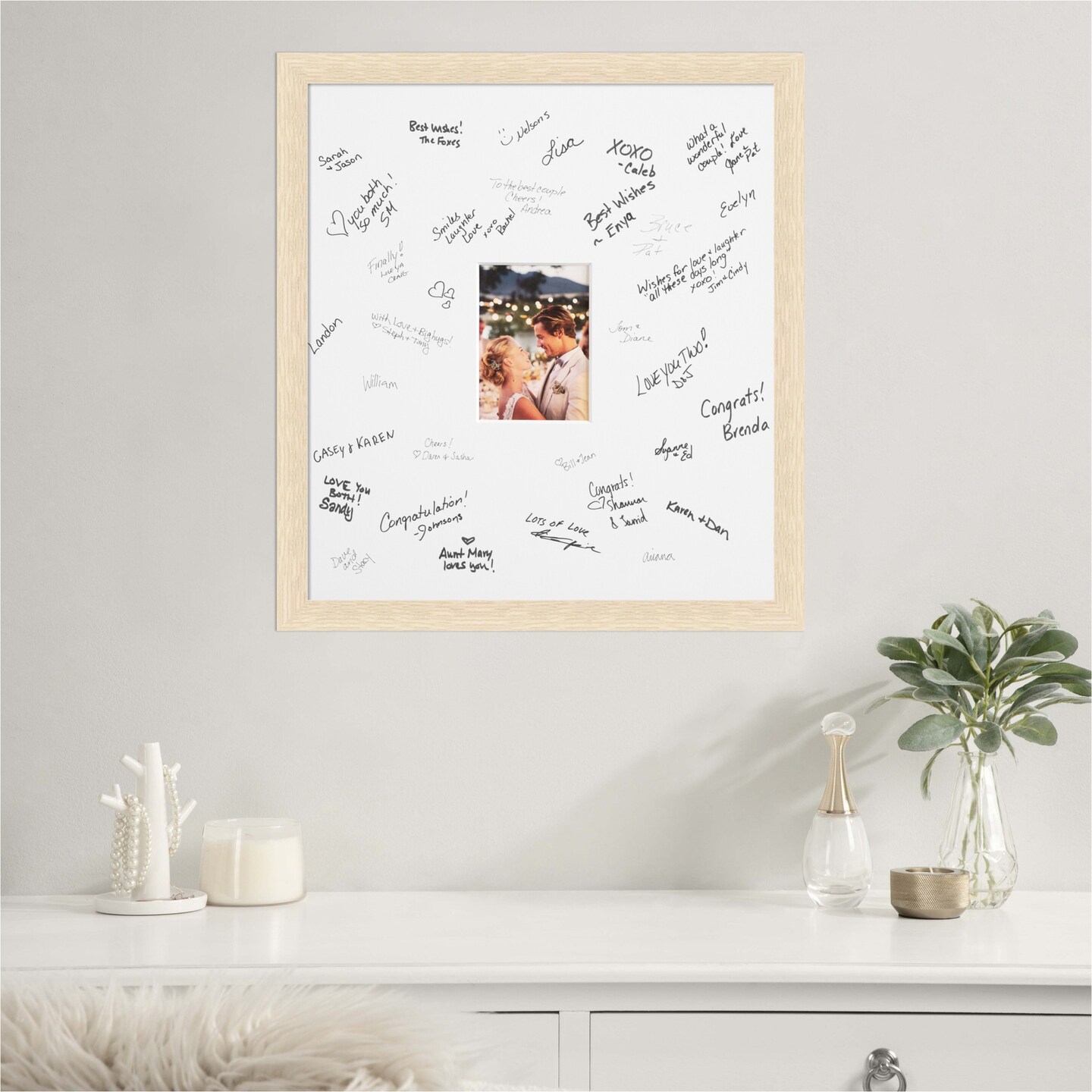 Woodgrain Stripe Signature Mat Picture Frame, Photo Frame Wedding Guest Book Alternative, Autograph Picture Mat for Signature Board, Wedding Celebrations Graduations Support Encouragement or Retirement