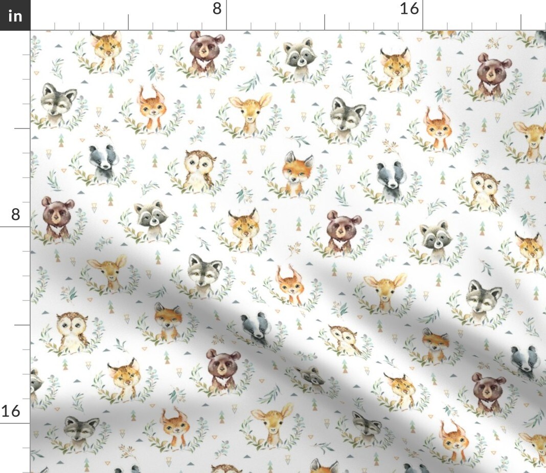Woodland Animals Nursery Style Smaller Scale Deer Bear Fox Custom Printed Fabric by Spoonflower Various Fabrics by the Yard or Fat Quarter