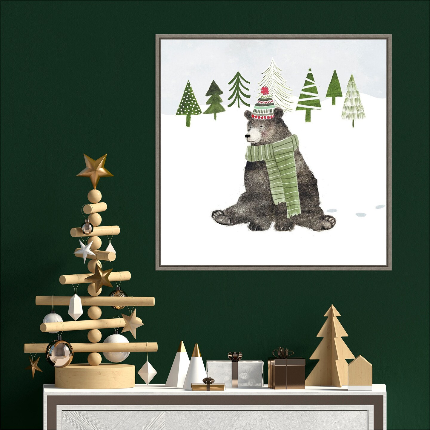 Woodland Christmas IV by Victoria Borges 22-in. W x 22-in. H. Canvas Wall Art Print Framed in Grey