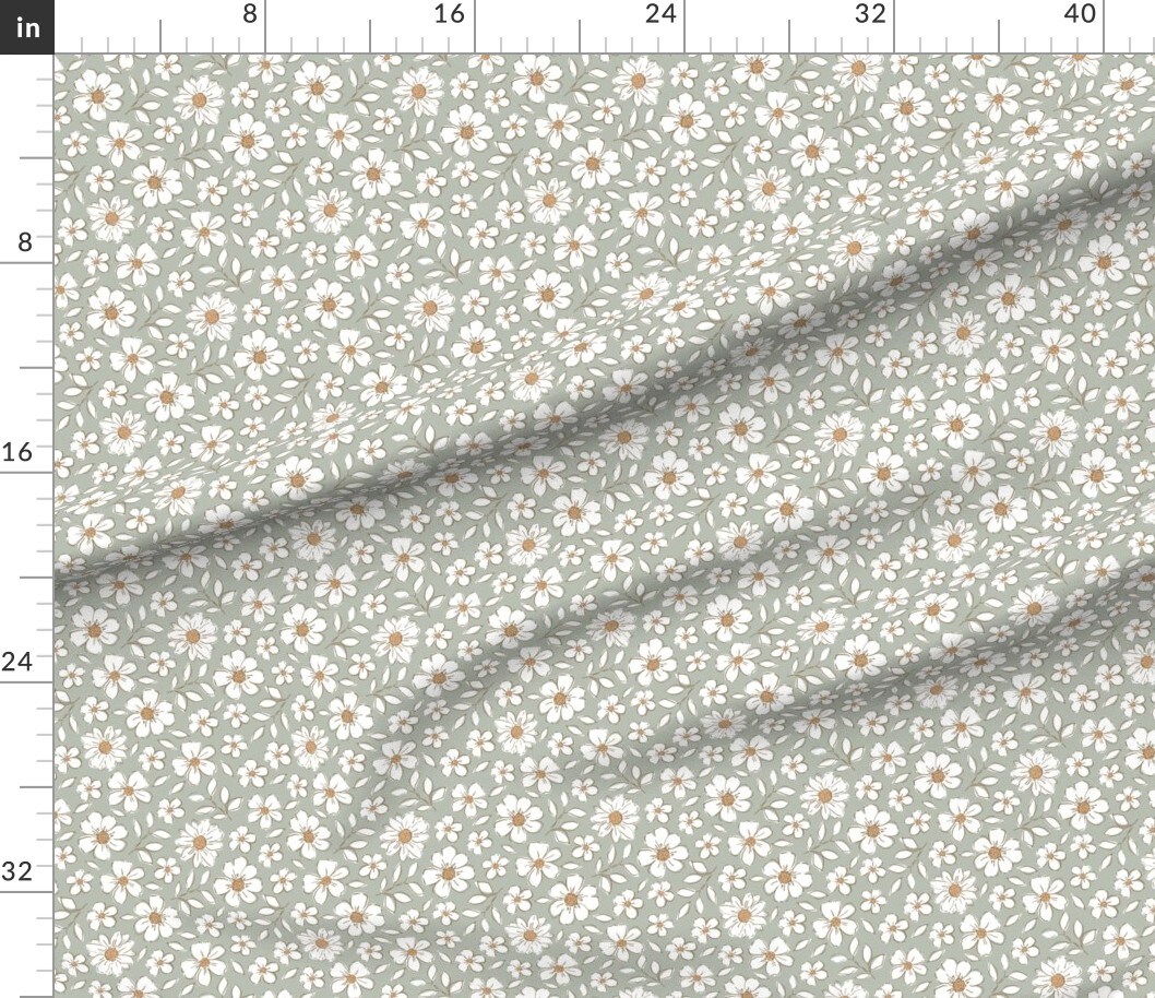 Woodland Flowers Sage Green Bohemian Botanical Neutral Cottagecore Custom Printed Fabric by Spoonflower Various Fabrics by the Yard or Fat Quarter