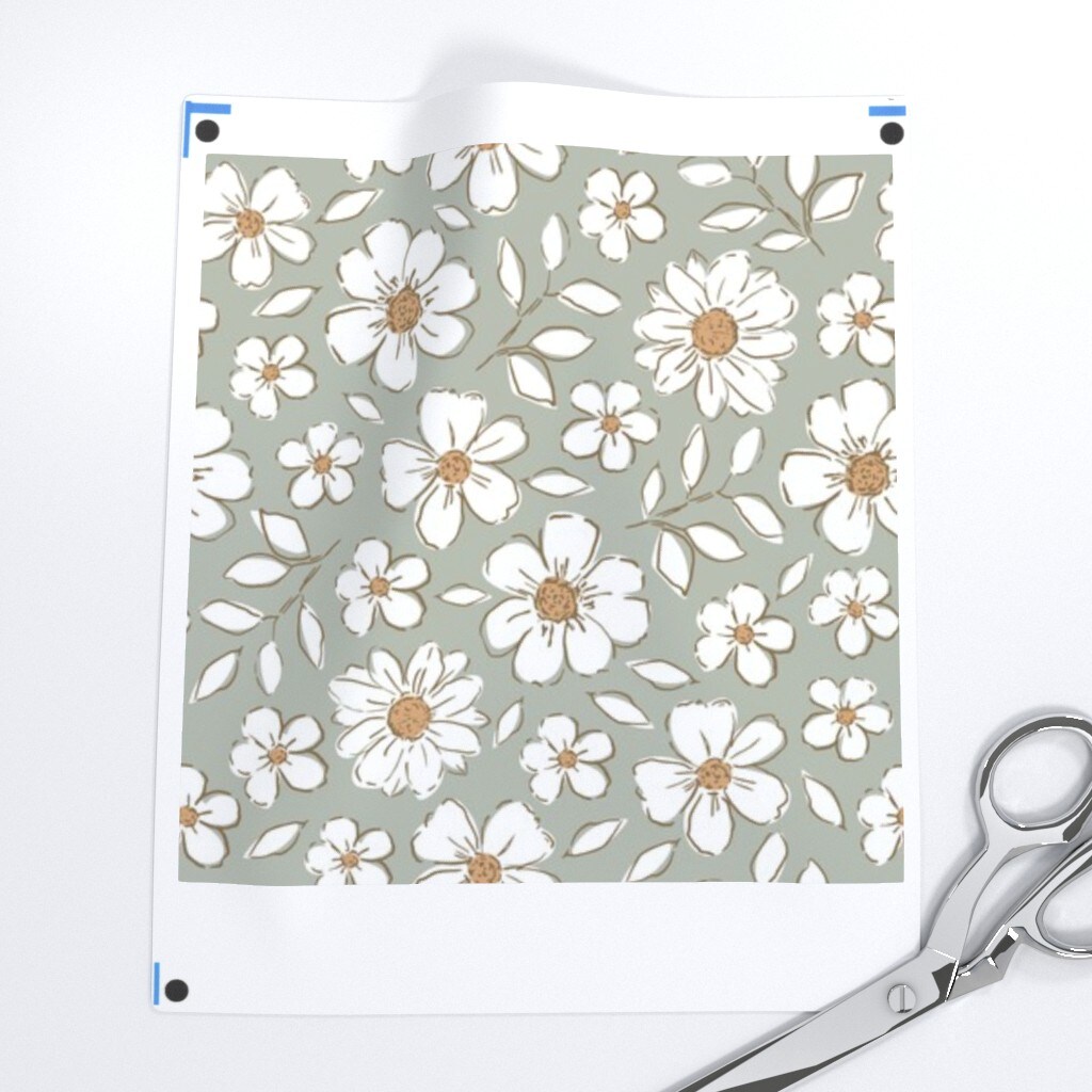 Woodland Flowers Sage Green Bohemian Botanical Neutral Cottagecore Custom Printed Fabric by Spoonflower Various Fabrics by the Yard or Fat Quarter