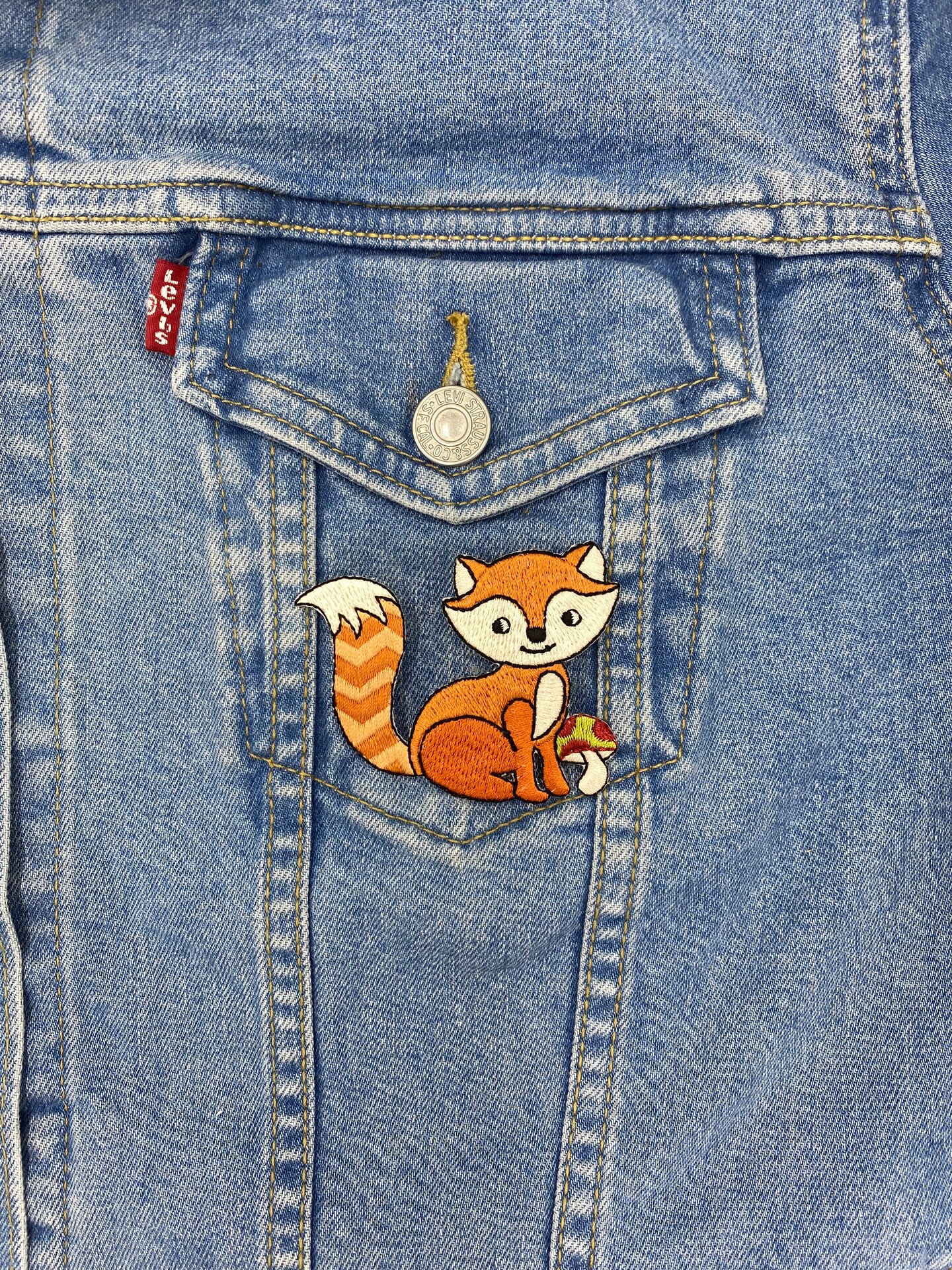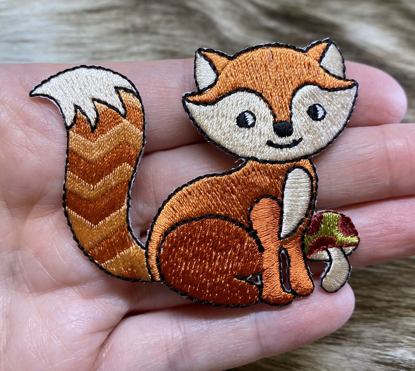 Woodland Fox with Mushroom, Cottagecore style, Embroidered, Iron on Patch
