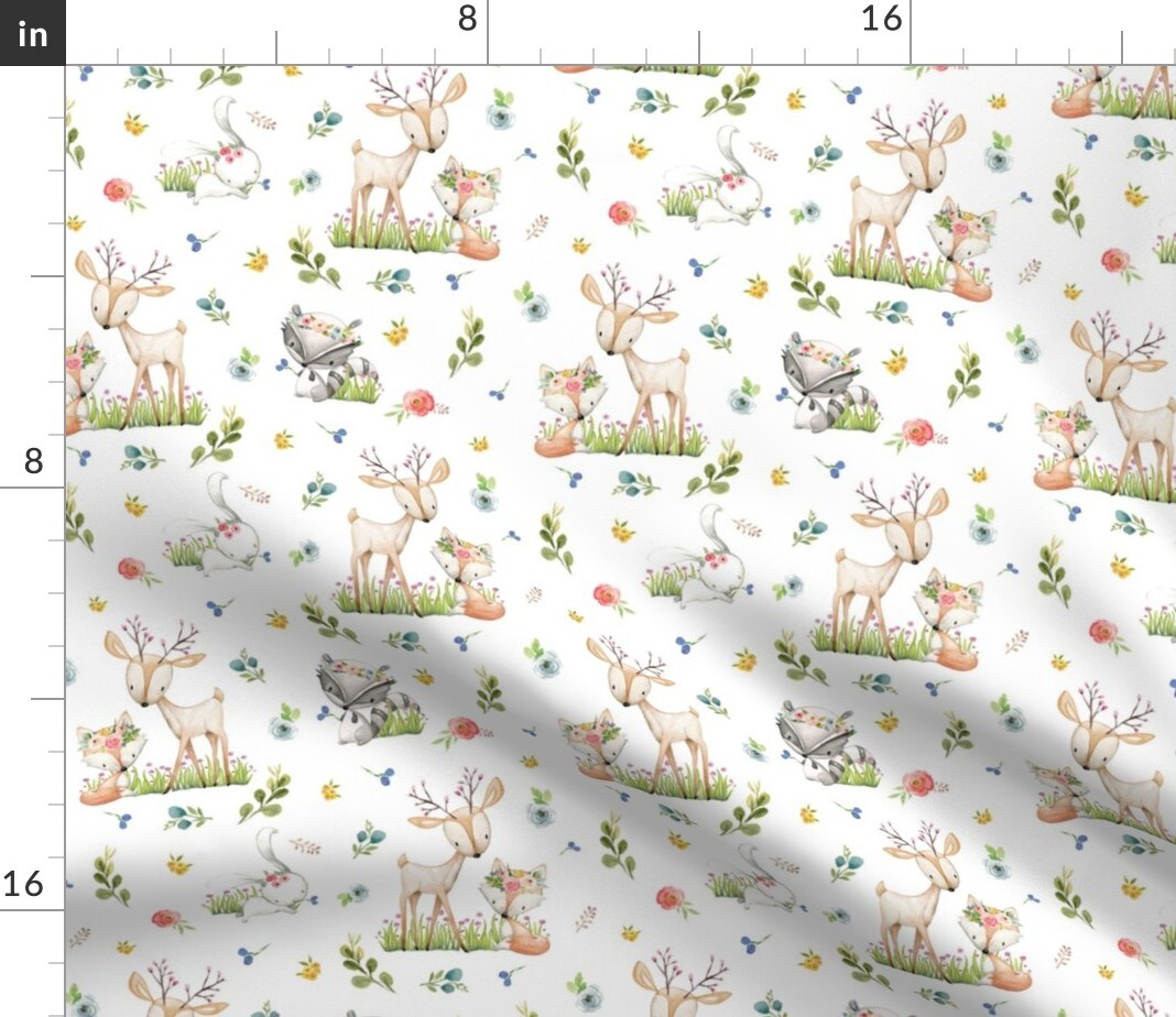 Woodland Friends Deer Fox Raccoon Bunny Flowers Girl Nursery Animals Custom Printed Fabric by Spoonflower Various Fabrics by the Yard or Fat Quarter