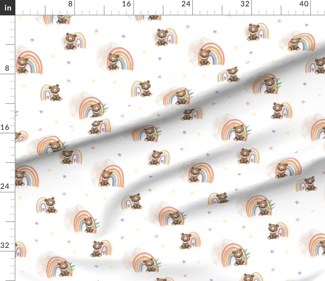 Woodland Nursery Cute Bears Watercolor Rainbow Kids Forest Animals Baby Stars Custom Printed Fabric by Spoonflower Various Fabrics by the Yard or Fat Quarter