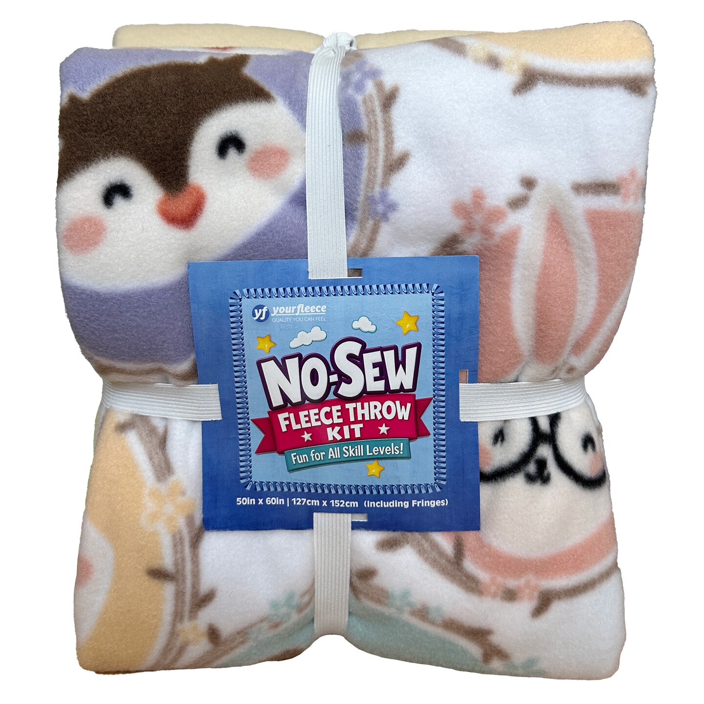Woodland Pals Anti-Pill Premium No Sew Throw Fleece Fabric Kit (Maize Backing)