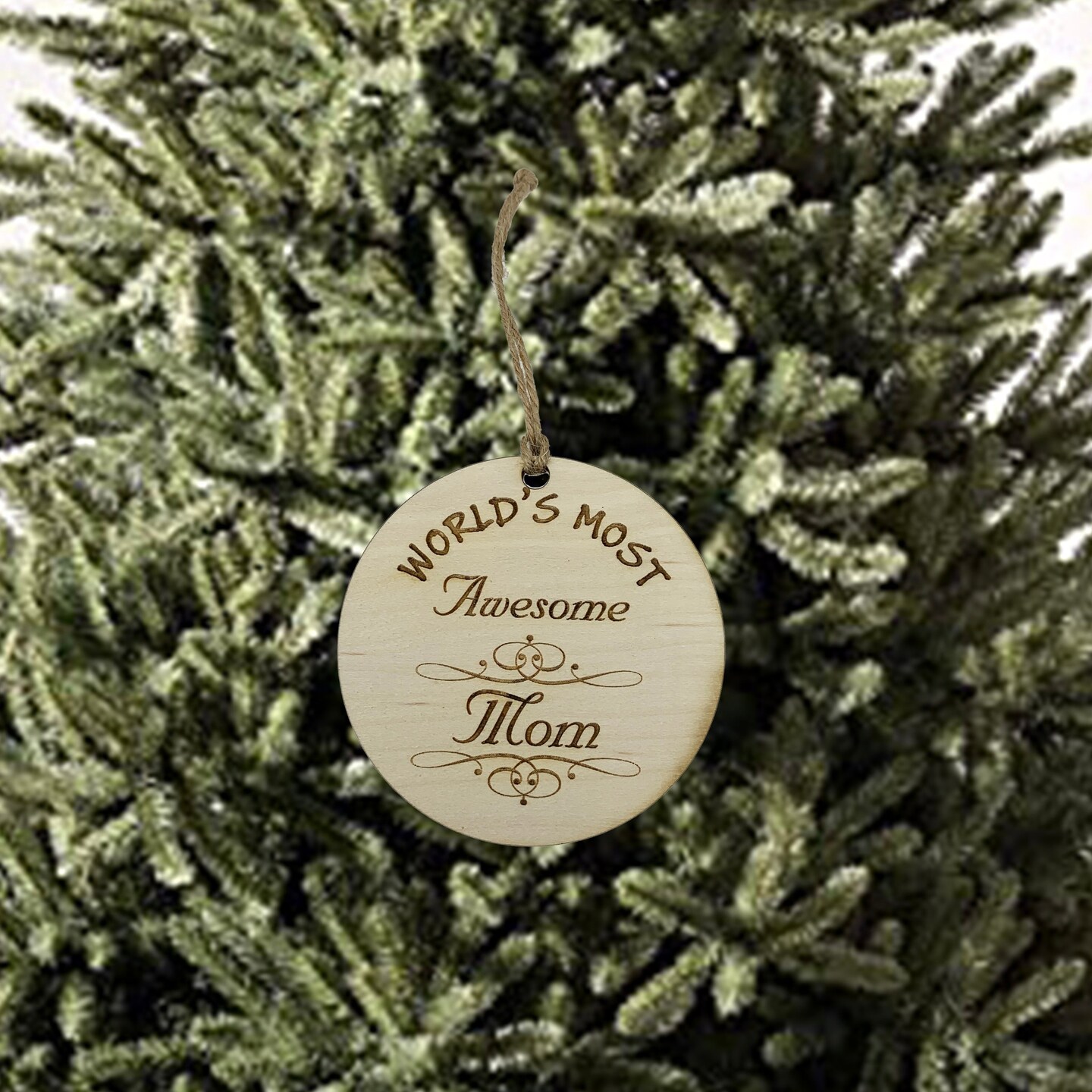 Worlds most Awesome Mom - Ornament - Raw Wood