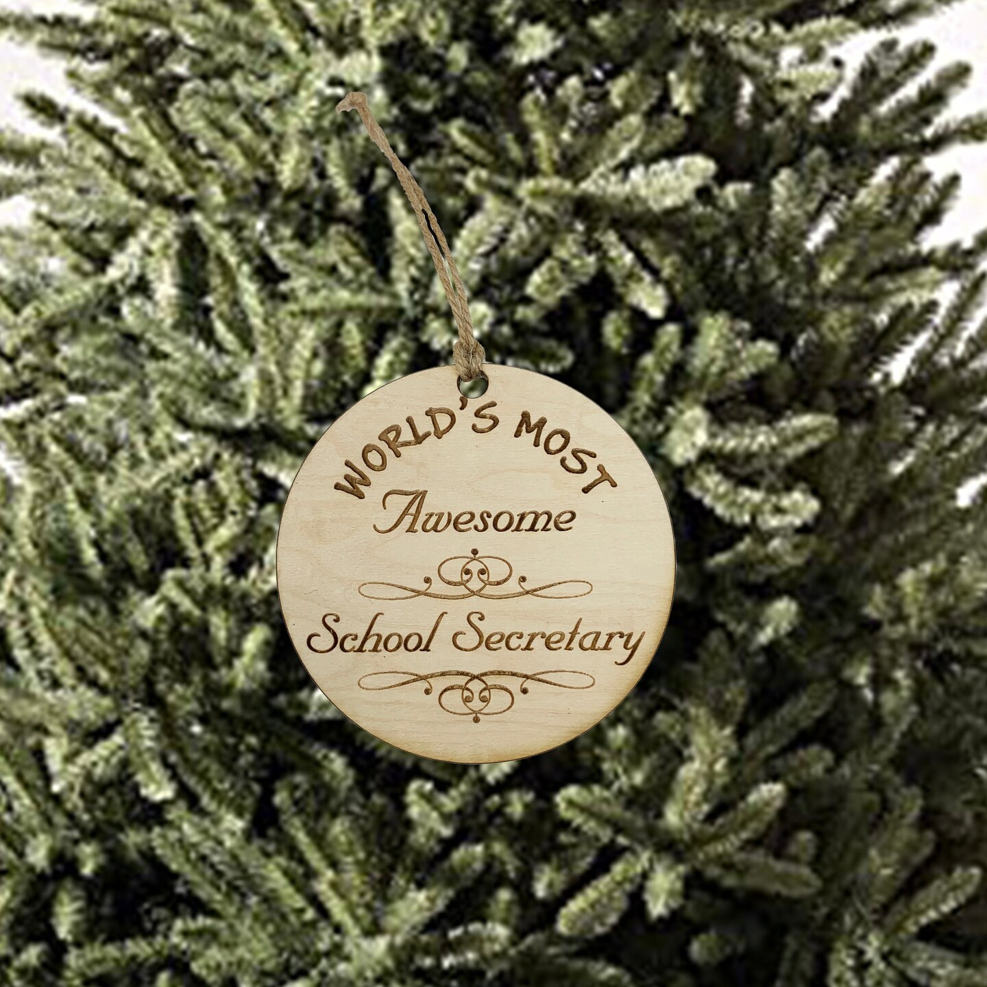 Worlds most Awesome School Secretary - Ornament - Raw Wood