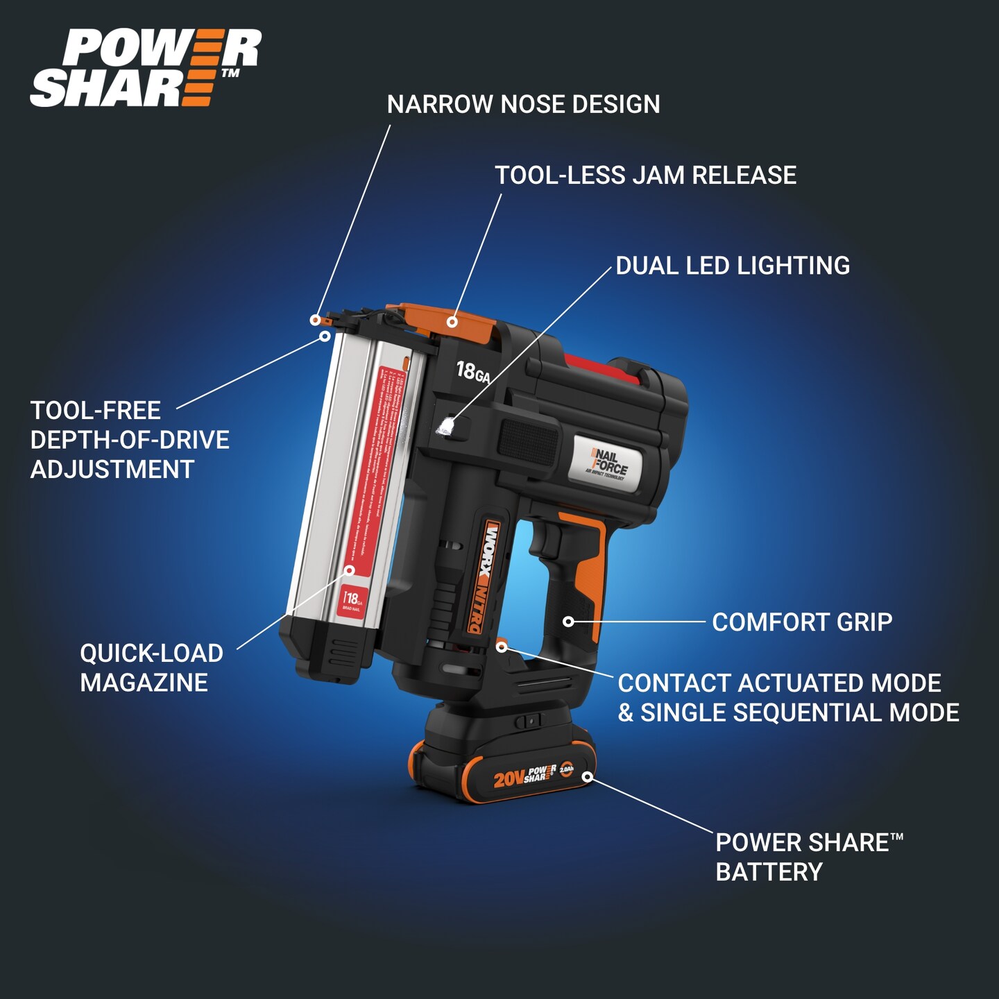 Worx Nitro WX842L 20V Power Share Cordless 18GA Brad Gun (Battery & Charger Included)
