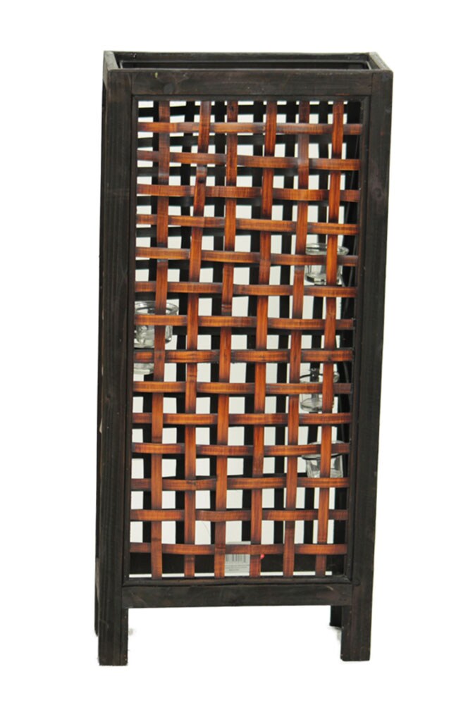 Woven Bamboo Distressed Finish 6 Tealight Candle Lantern