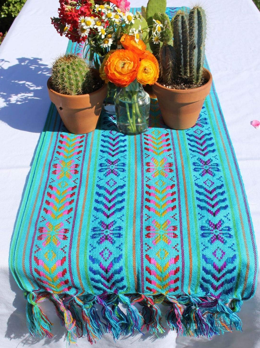 Woven Rebozo Style Mexican Table Runner Scarf (Turquoise)