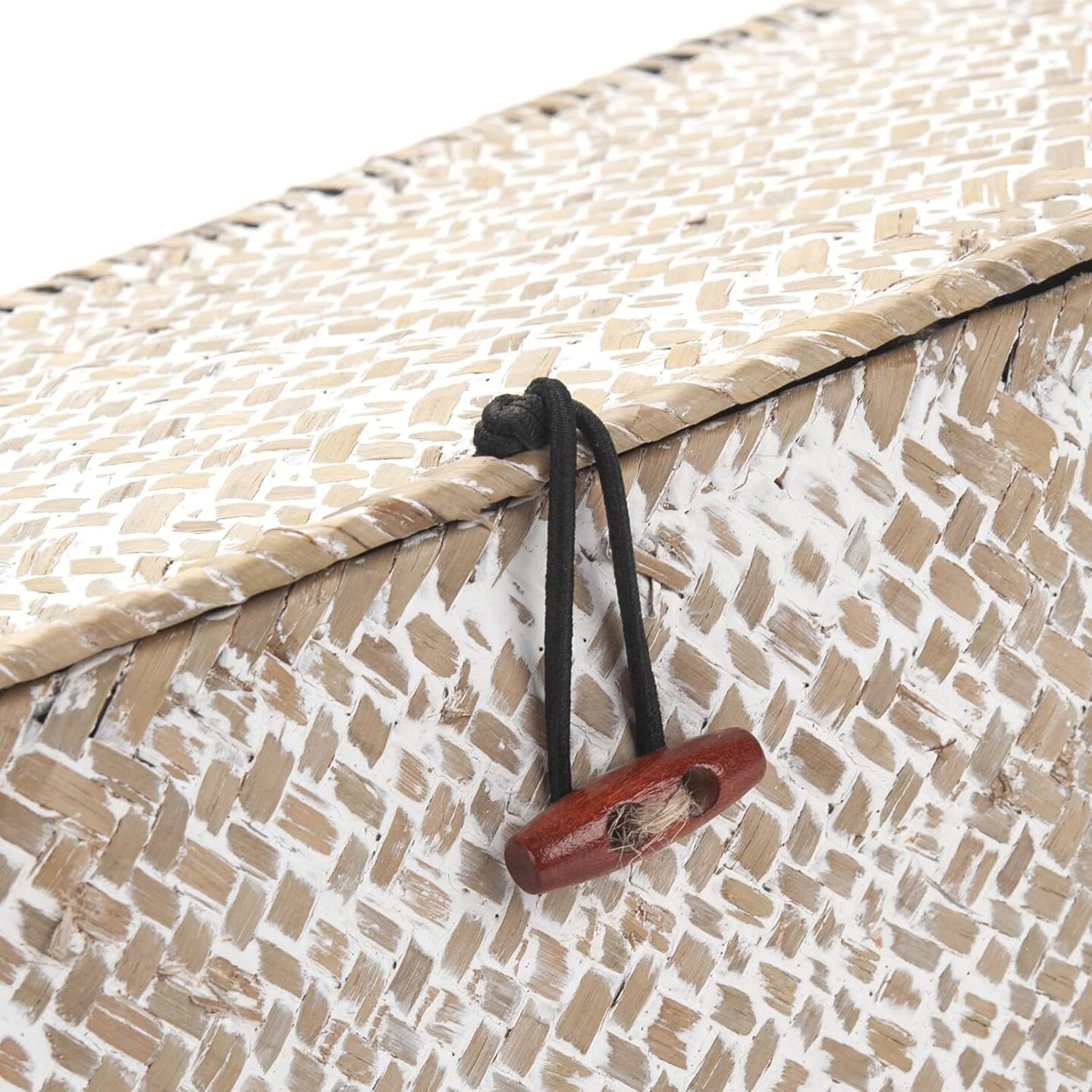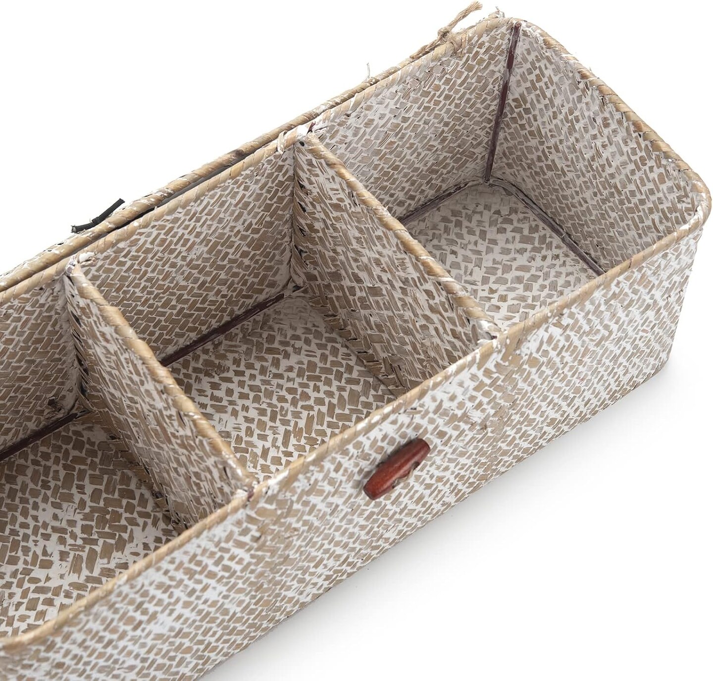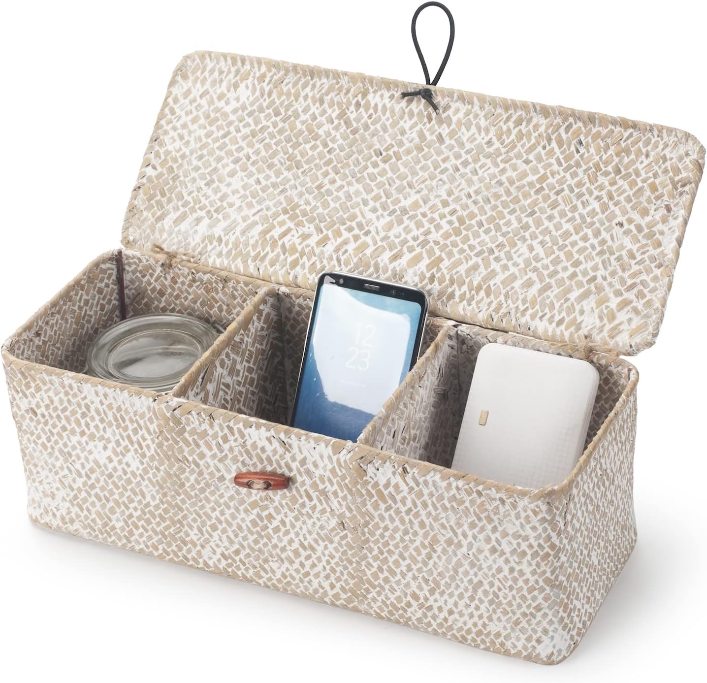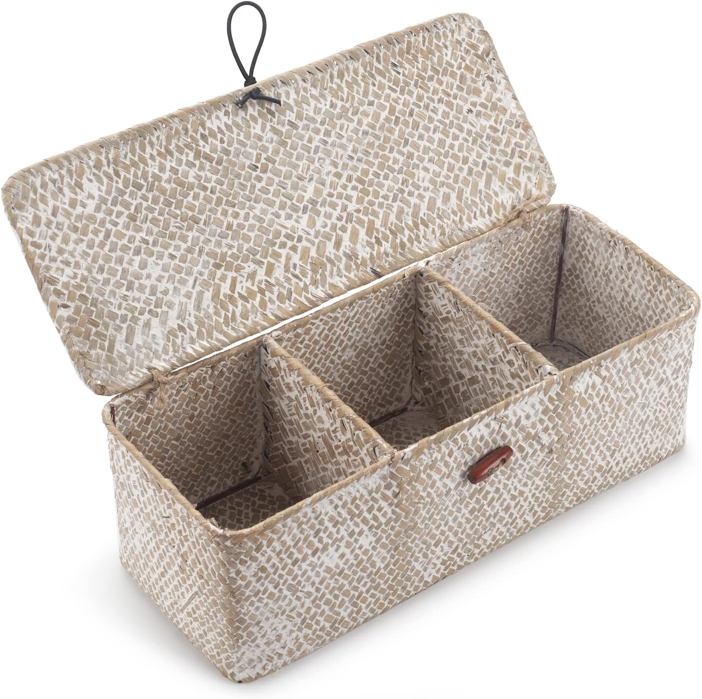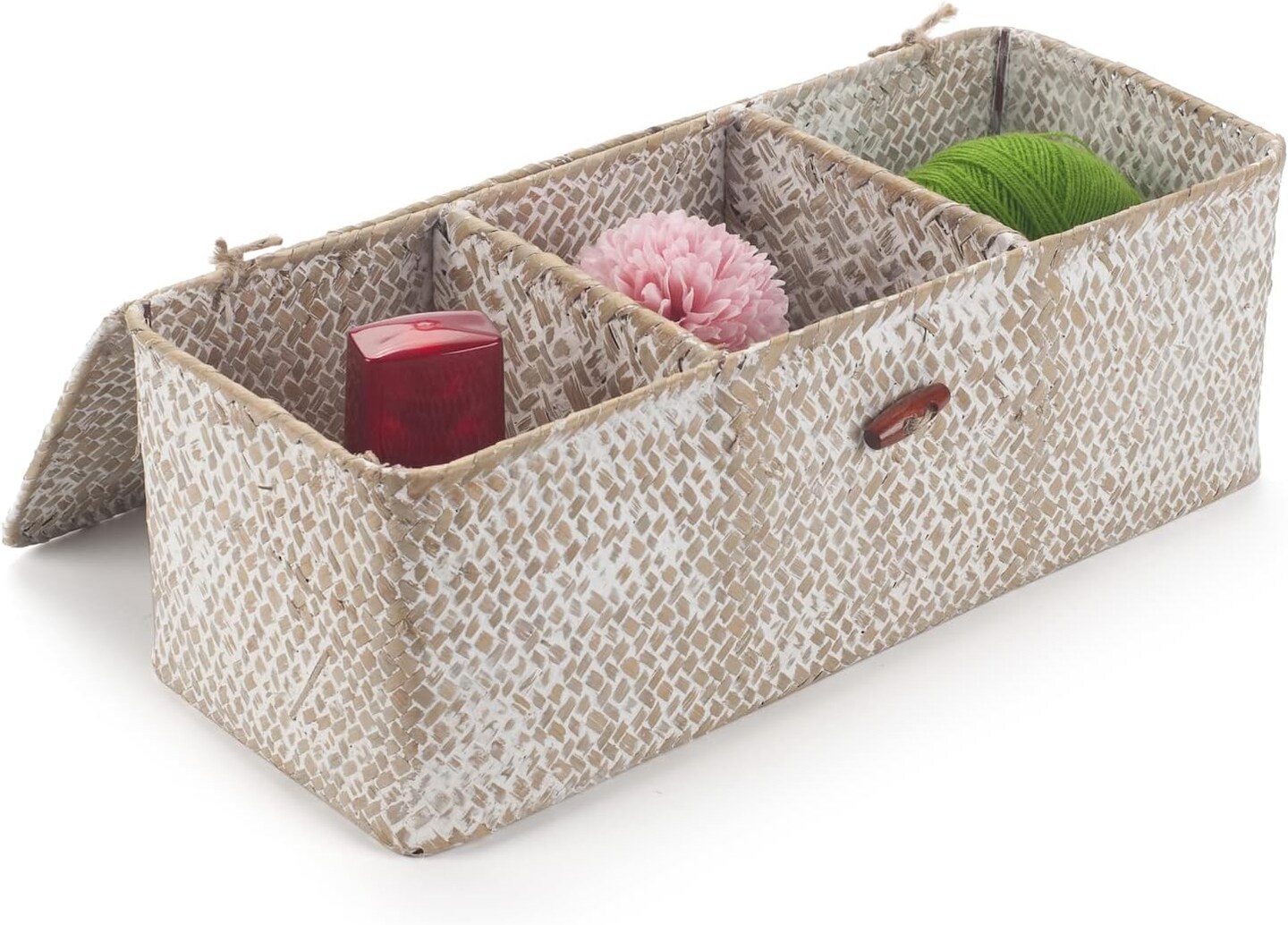 Woven Storage Basket with Lid - Whitewash 3 Sections