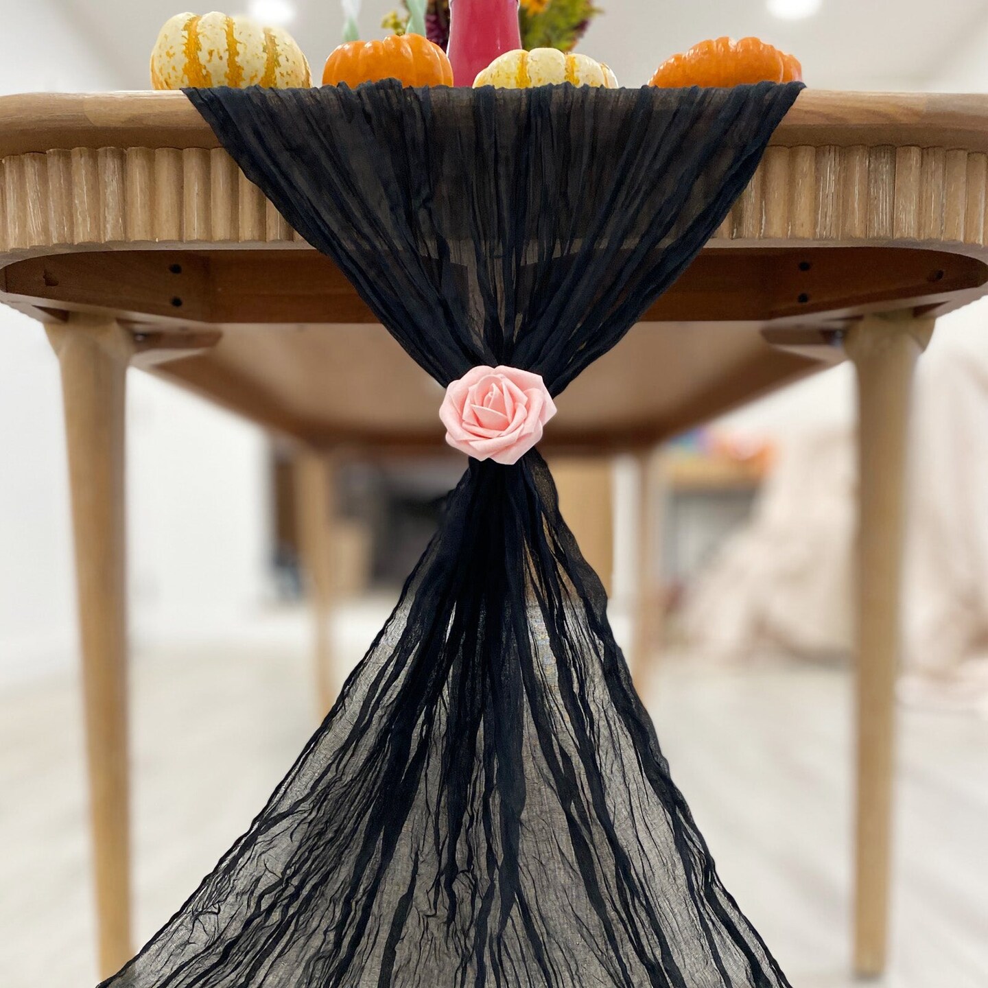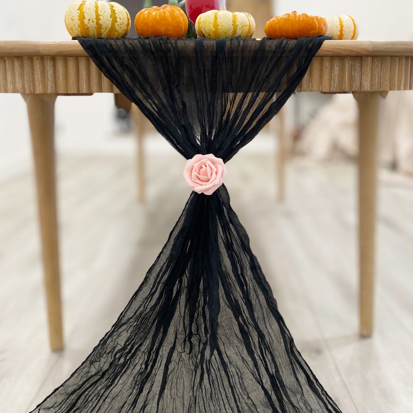 Wrapables 10Ft Bohemian Cheesecloth Gauze Table Runner for Rustic Weddings, Parties, Home Decor, Black