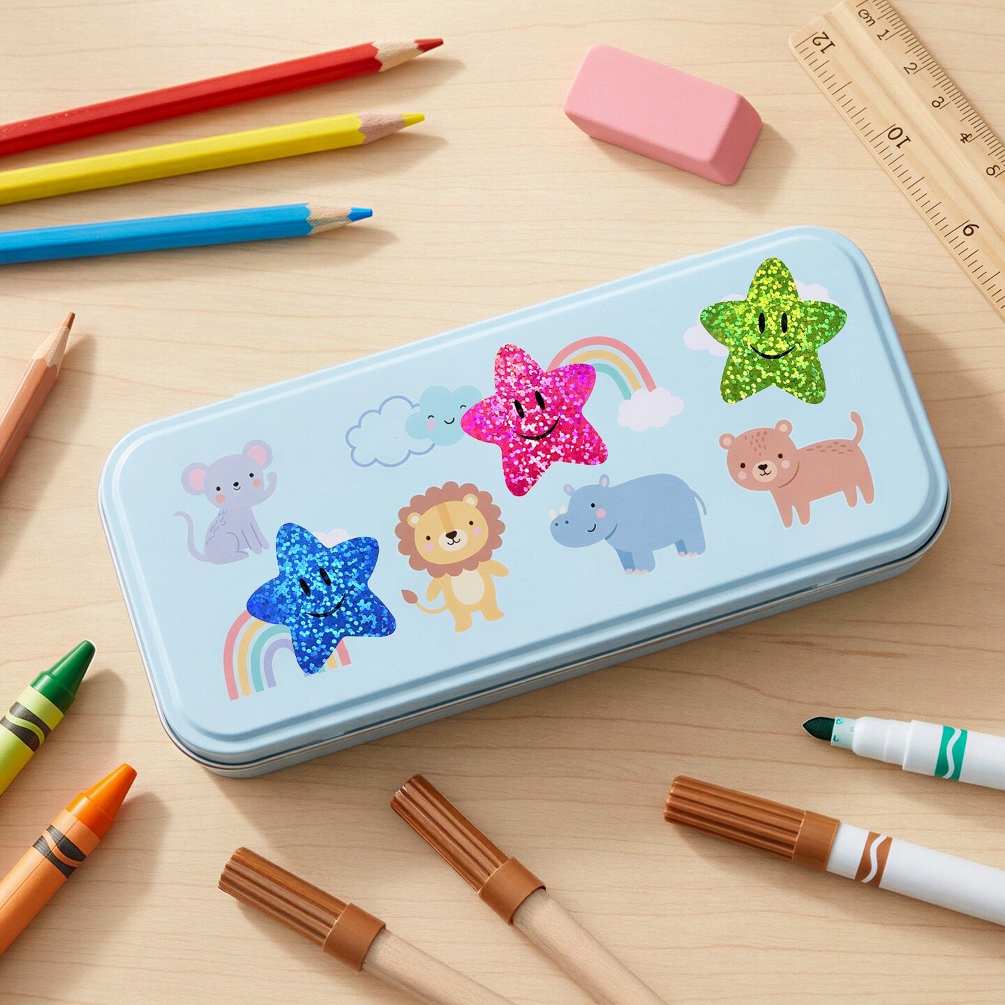 Wrapables 1.5 Inch Holographic Glitter Sticker Roll, for Sealing Envelopes, Gift Boxes, Journal, Party Decor and Supplies (500pcs), Smiling Stars