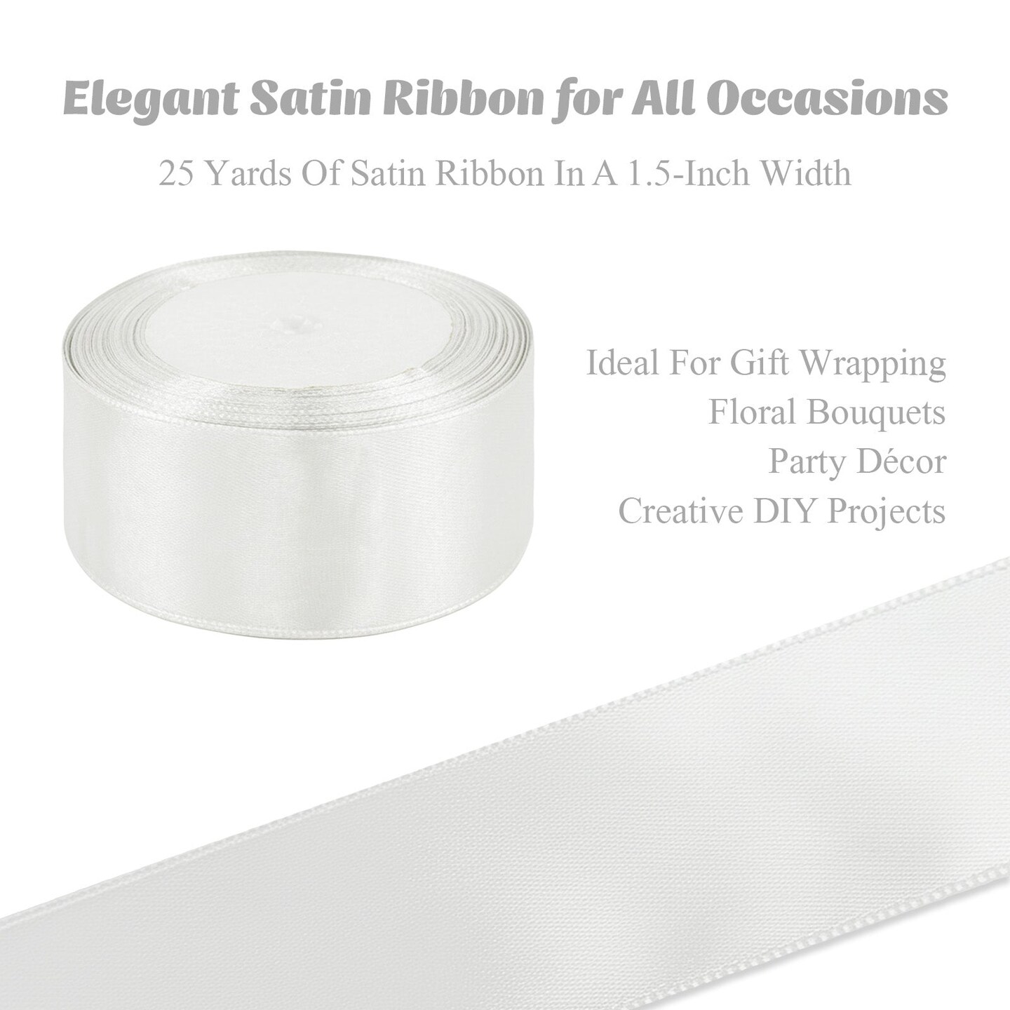 Wrapables 1.5 Inch x 25 Yards Satin Ribbon for Gift Wrapping, Weddings, Floral Bouquets, Bow Making, Party Decorations, DIY Crafts, White