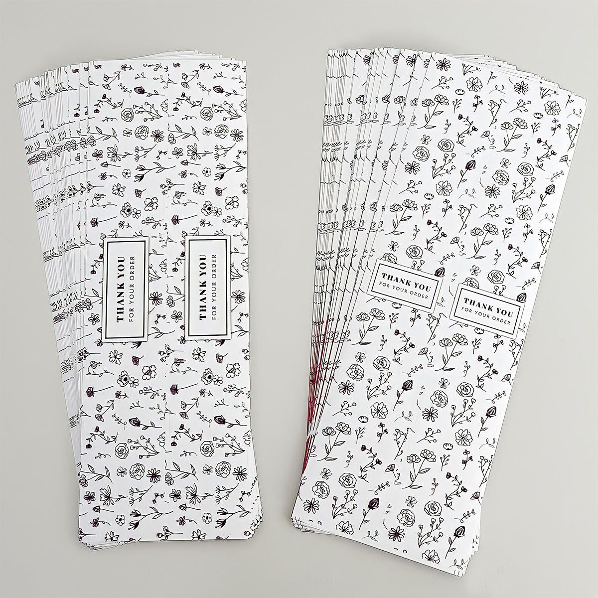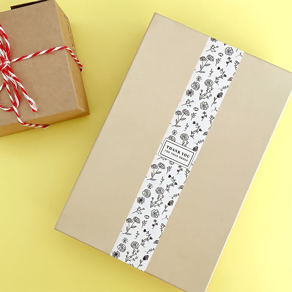 Wrapables 1.56" x 9.88" Rectangular Thank You Sealing Stickers and Labels for Packages, Boxes, Bags, Small Business, Gifts (100pcs), Black & White Floral