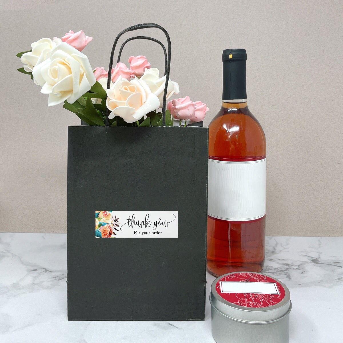 Wrapables 3" x 1" Small Business Thank You Stickers Roll, Sealing Stickers and Labels for Boxes, Envelopes, Bags, Packages
