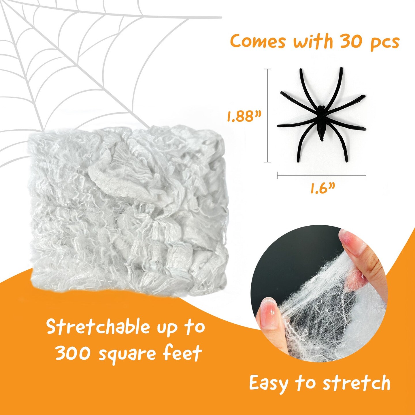 Wrapables 300 Sqft Spider Web with 30 Fake Spiders, Stretchy Cobweb Halloween Decoration for Parties, Haunted House