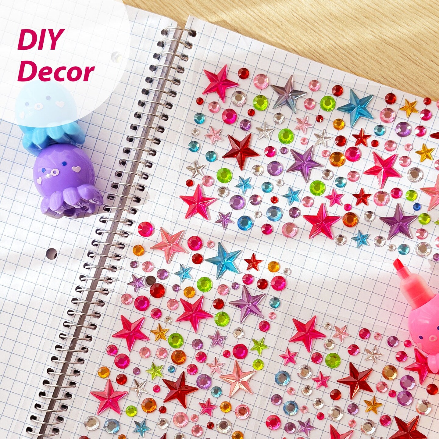 Wrapables 327pcs Acrylic Self Adhesive Crystal Rhinestone Gem Stickers, DIY, Arts & Crafts Supplies (3 sheets), Stars