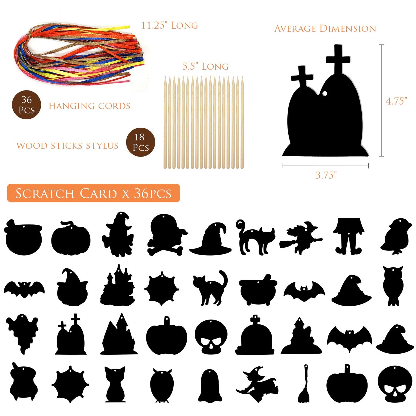 Wrapables 36pc Rainbow Scratch Arts Ornaments, DIY Magic Scratch Arts and Crafts, Halloween