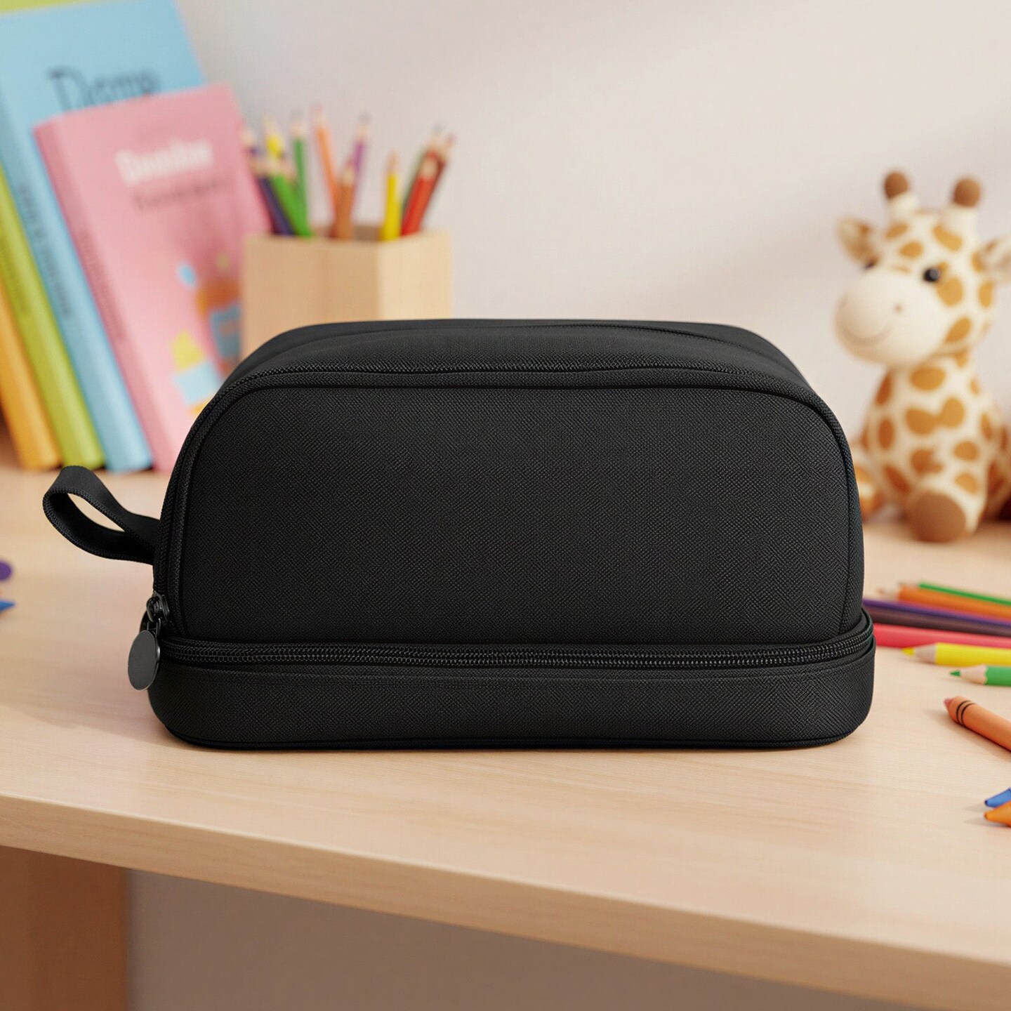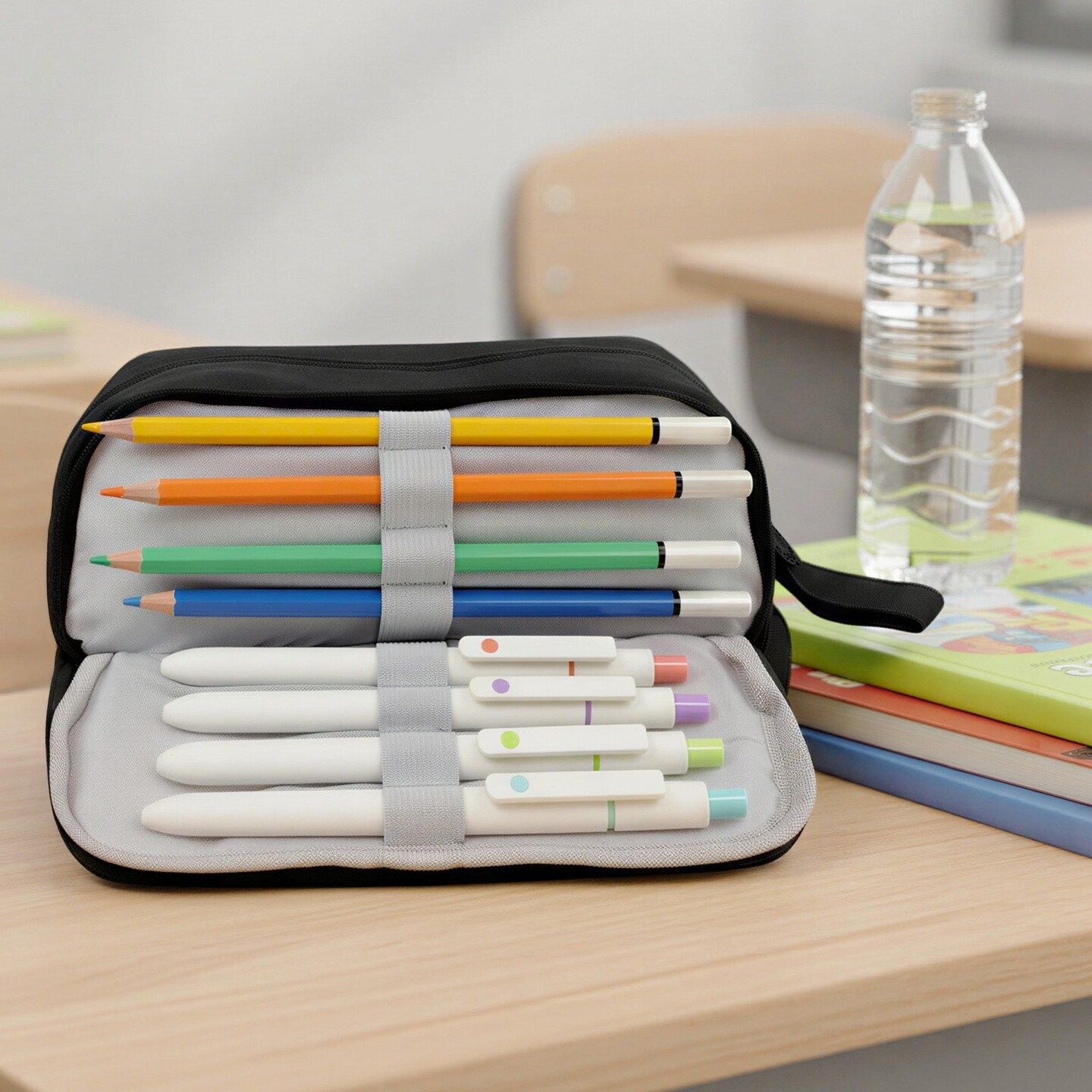 Wrapables 4 Compartment Large Capacity Pencil Case, Pencil Pouch for Stationery Tools, Black