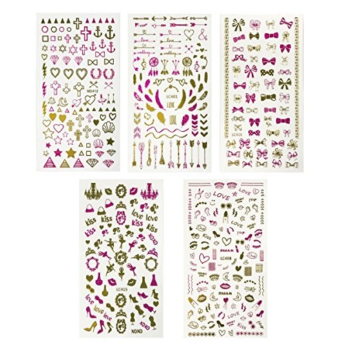 Wrapables 450+ Nail Stickers Pink & Gold Foil Nail Stickers Nail Art, 5 sheets - Love
