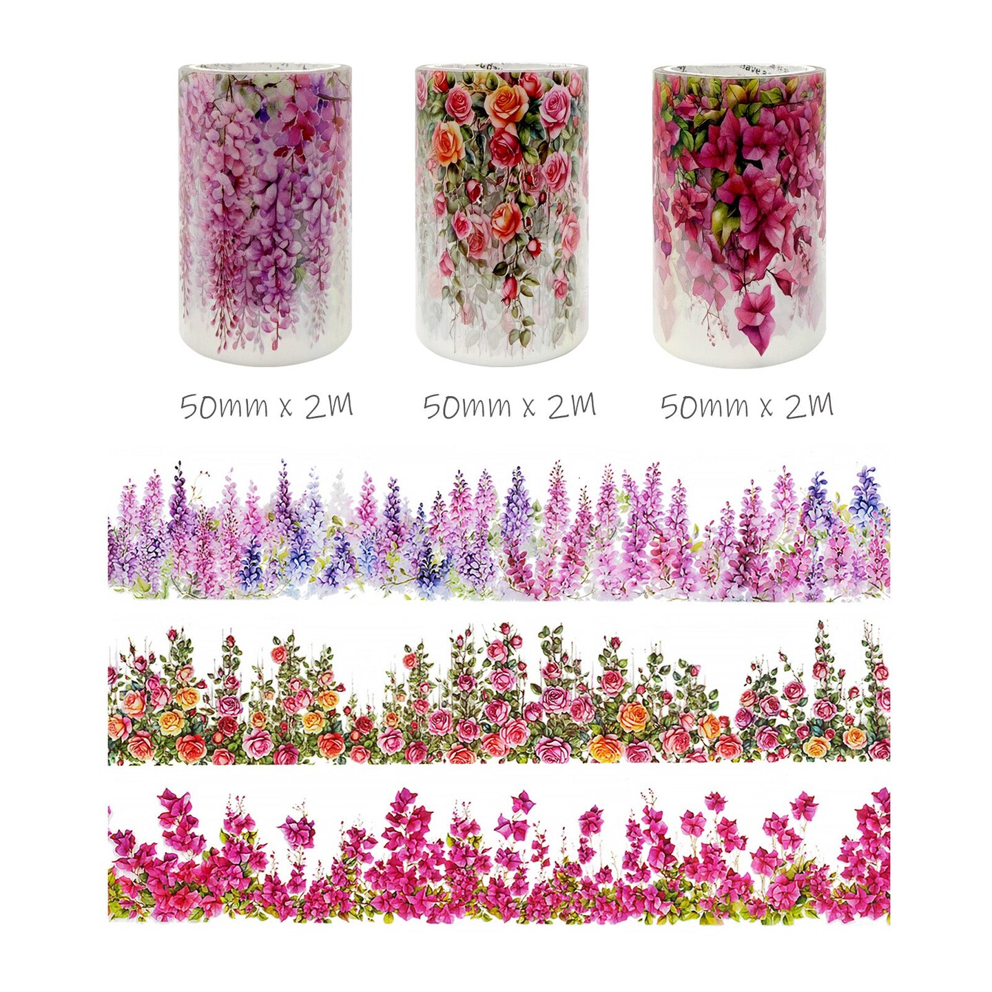 Wrapables Aesthetic Floral Vines PET Washi Tapes for Scrapbooking, Stationery, Journaling, Diary, Card Making (Set of 3)