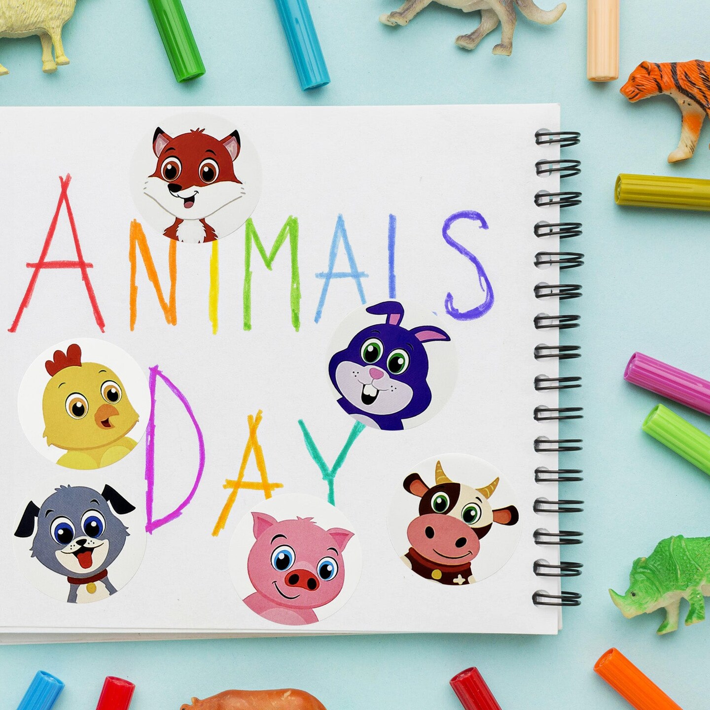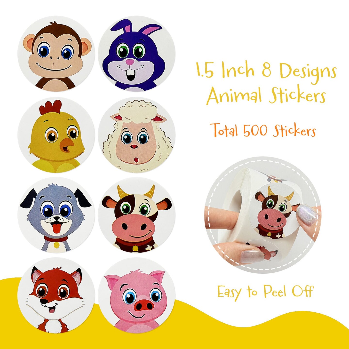 Wrapables Animal Sticker Roll, Stickers for Sealing Cards, Envelopes, Gift Boxes, Festive Party Favors (500pcs), Farm