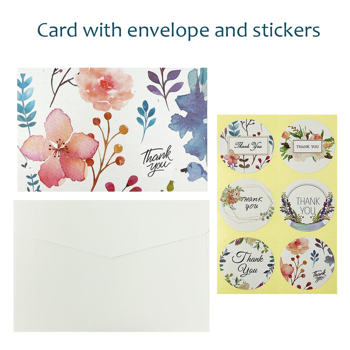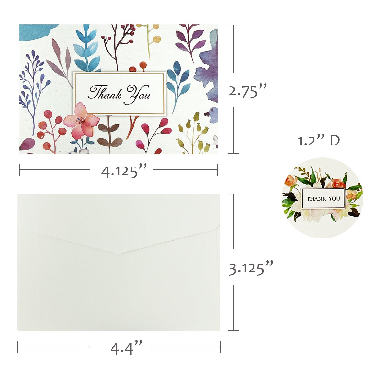 Wrapables Blank Thank You Cards with Envelopes & Seals for Weddings, Bridal Showers, Baby Showers (Set of 4), Blissful Bloom