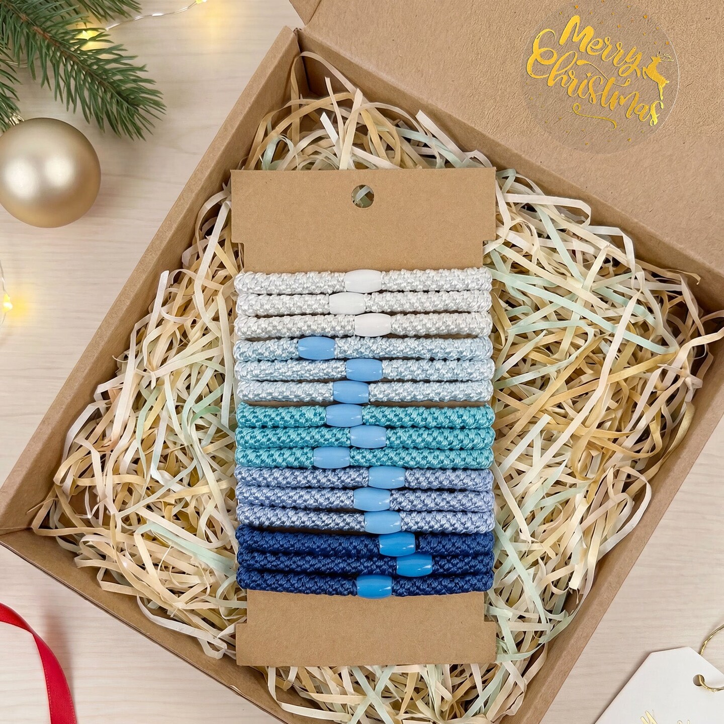 Wrapables Braided Elastic Hair Ties for Women, No Damage Hairbands for Thick Ponytails (15pcs), Blues