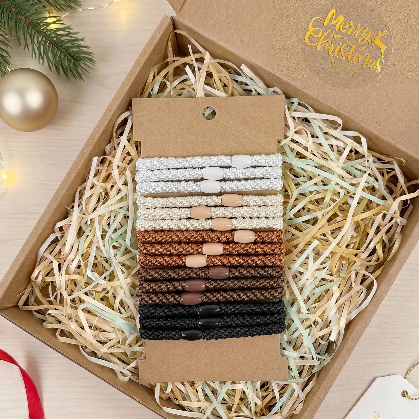 Wrapables Braided Elastic Hair Ties for Women, No Damage Hairbands for Thick Ponytails (15pcs), Neutrals