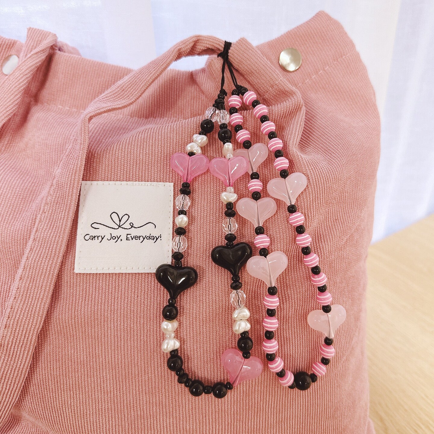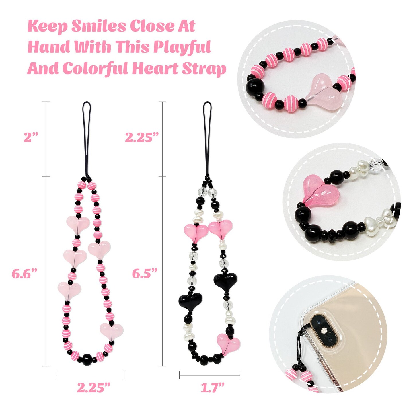 Wrapables Charms and Beads Cell Phone Wrist Strap, Keychain, Bag Charm (Set of 2), Hearts