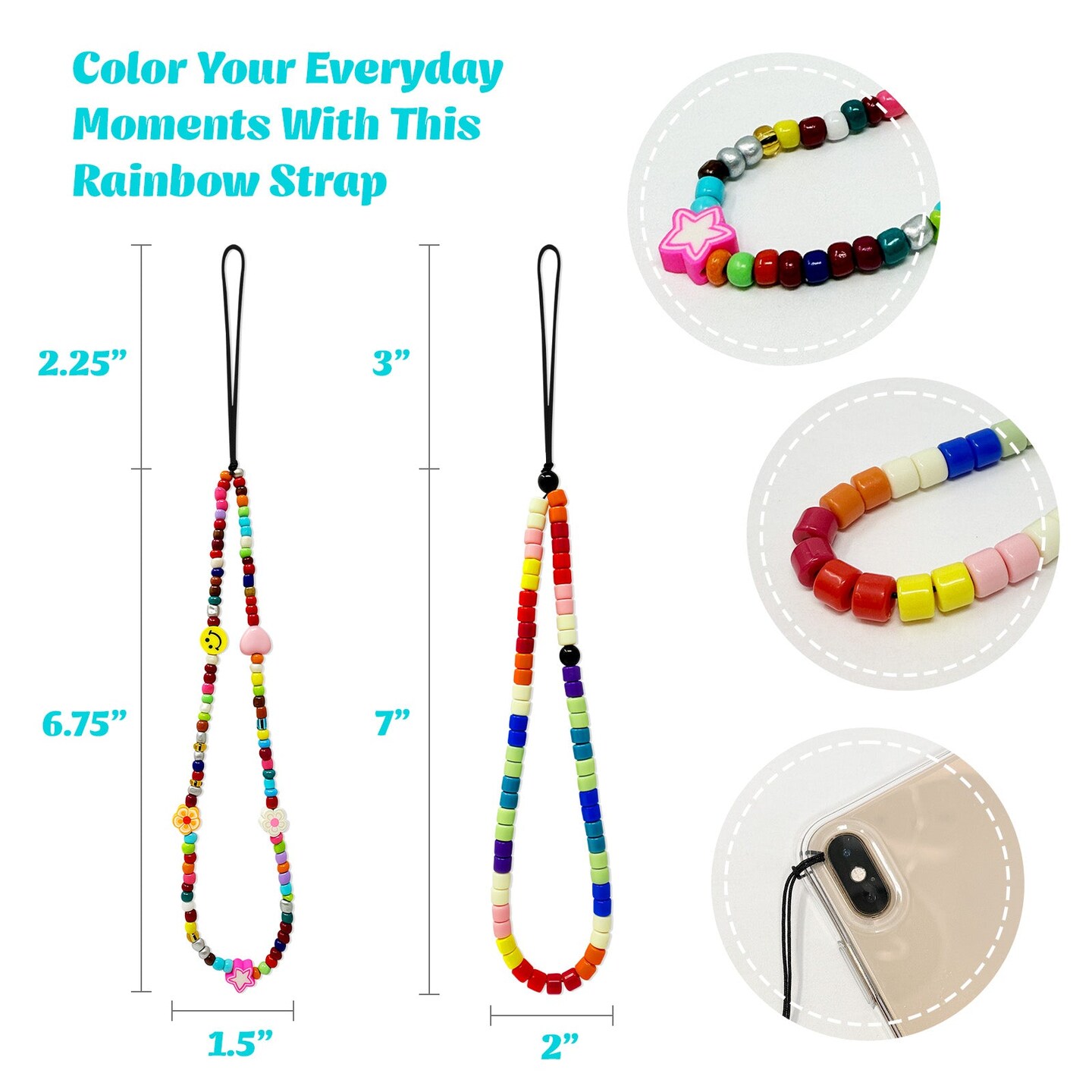 Wrapables Charms and Beads Cell Phone Wrist Strap, Keychain, Bag Charm (Set of 2), Rainbow Color