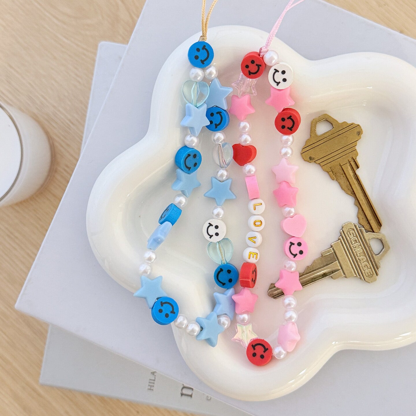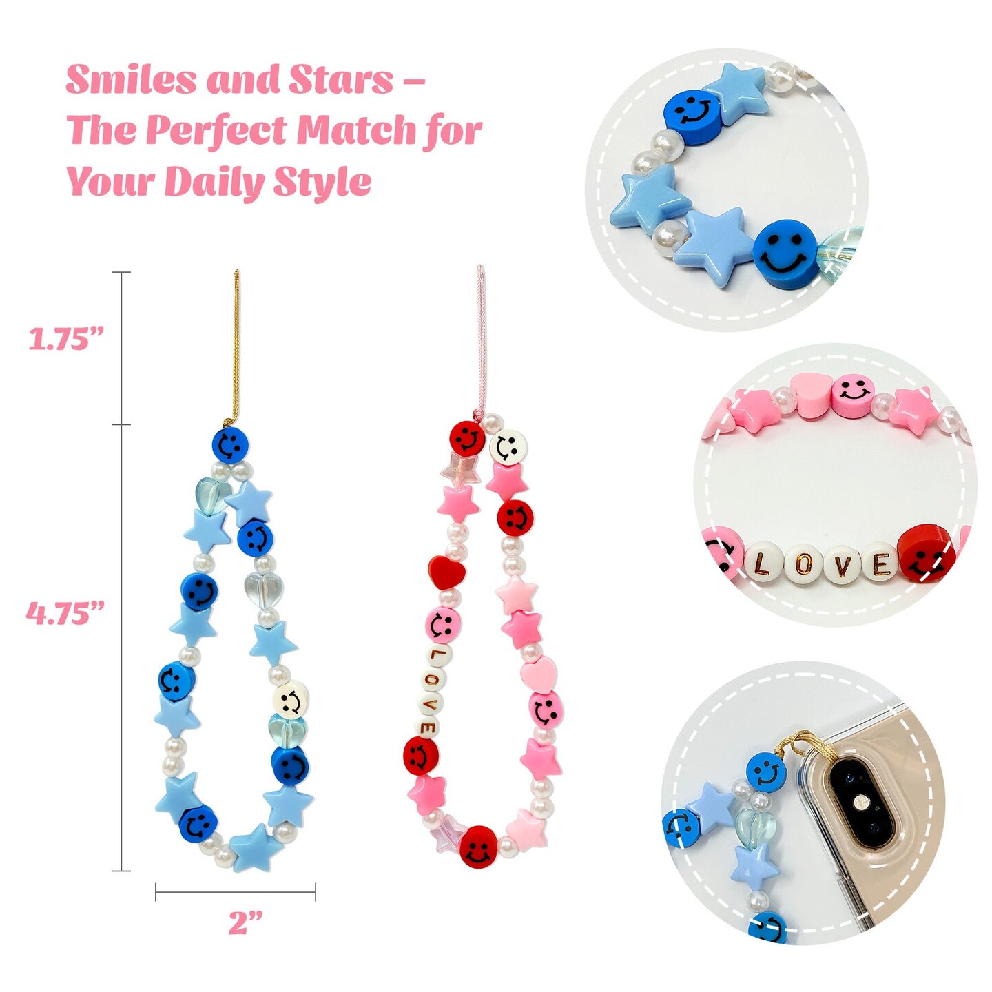 Wrapables Charms and Beads Cell Phone Wrist Strap, Keychain, Bag Charm (Set of 2), Smiles and Stars
