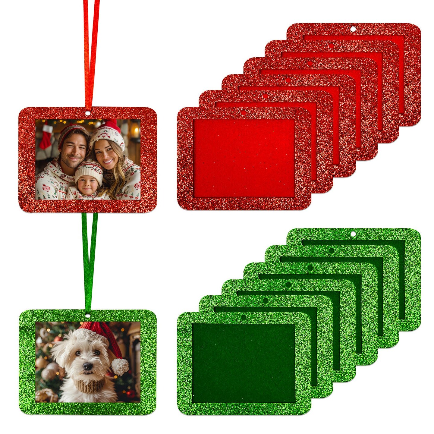 Wrapables Christmas Holiday Glittery Felt Photo Frame Ornaments (Set of 12), Red and Green Rectangle