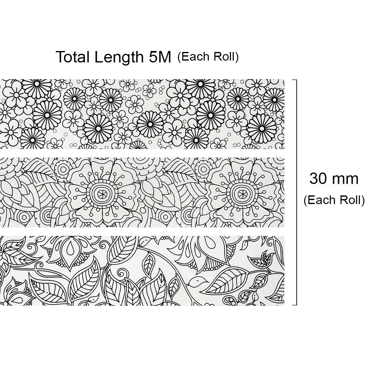 Wrapables Coloring Washi Masking Tape, 30mm x 5M, Set of 3