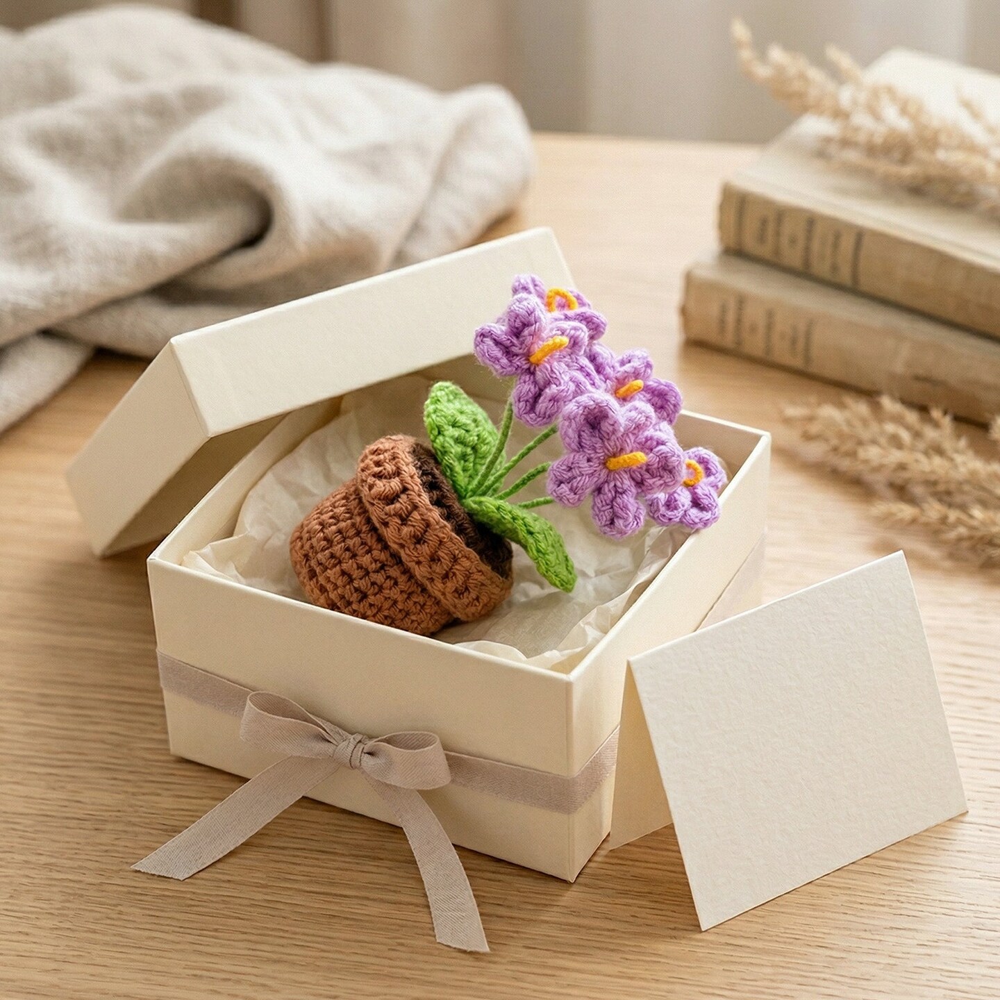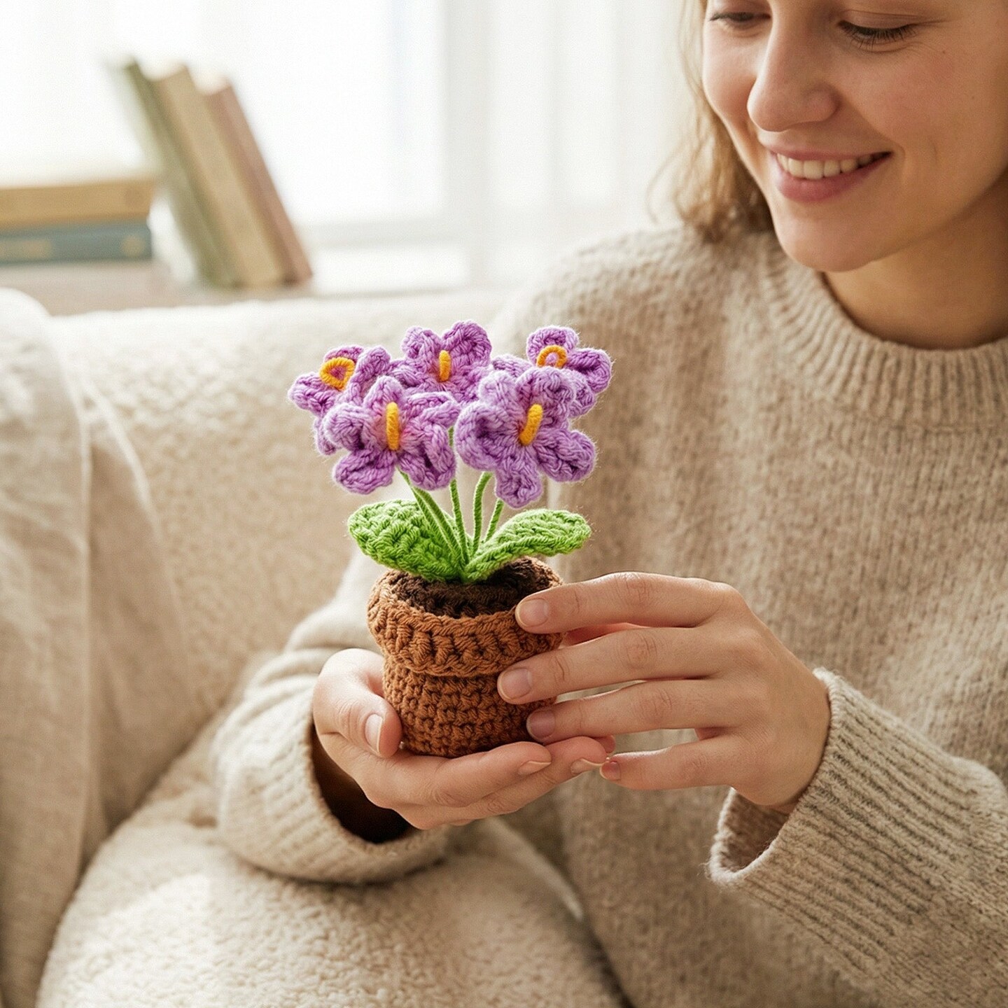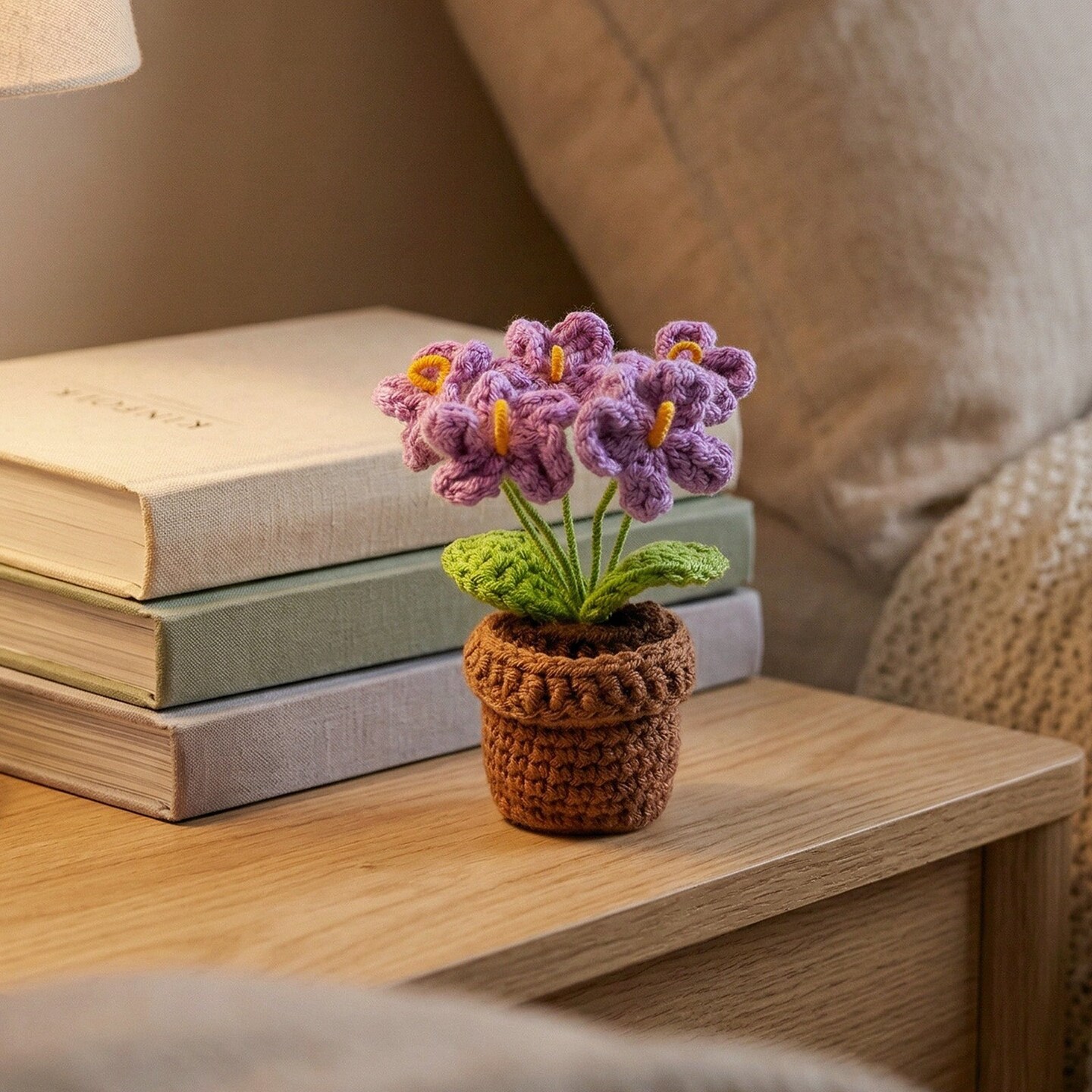 Wrapables Crochet Artificial Flowers, Knitted Potted Plants For Home and Office Decoration, Forget Me Not Purple
