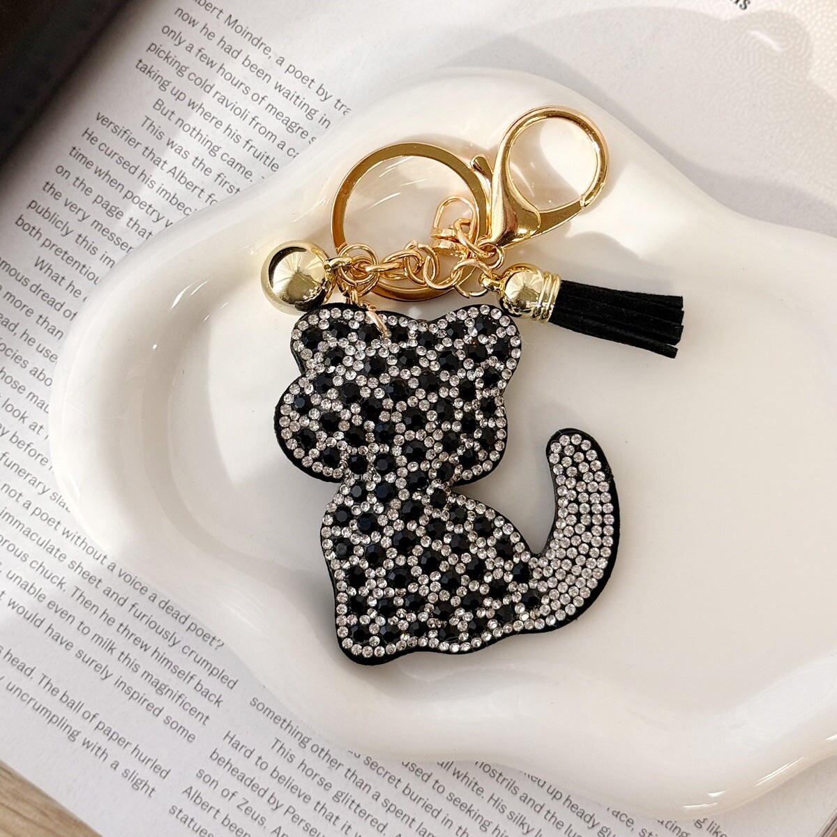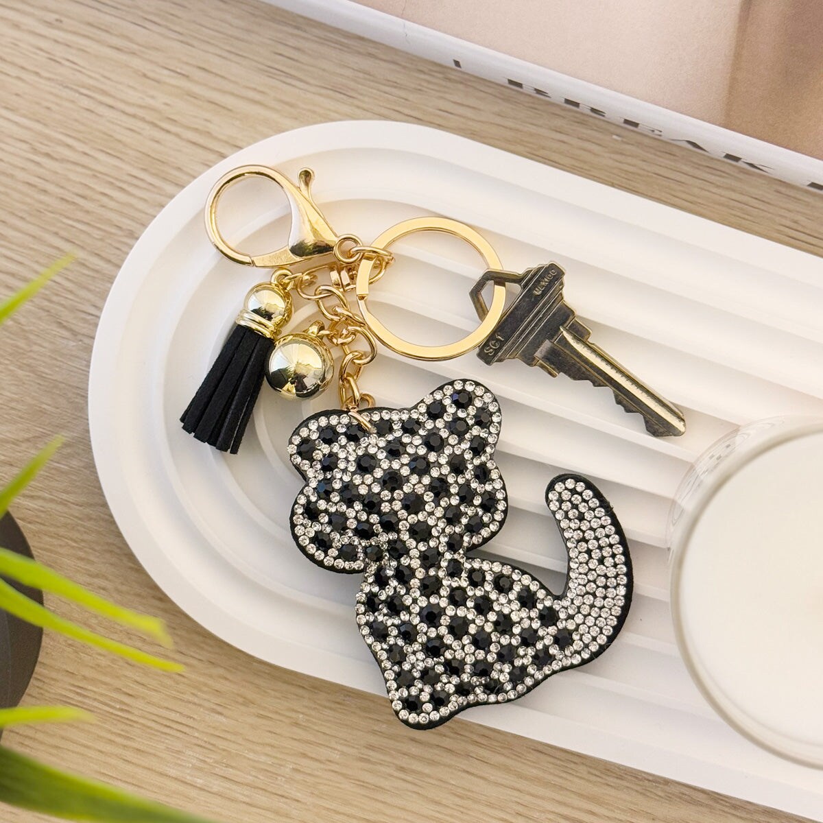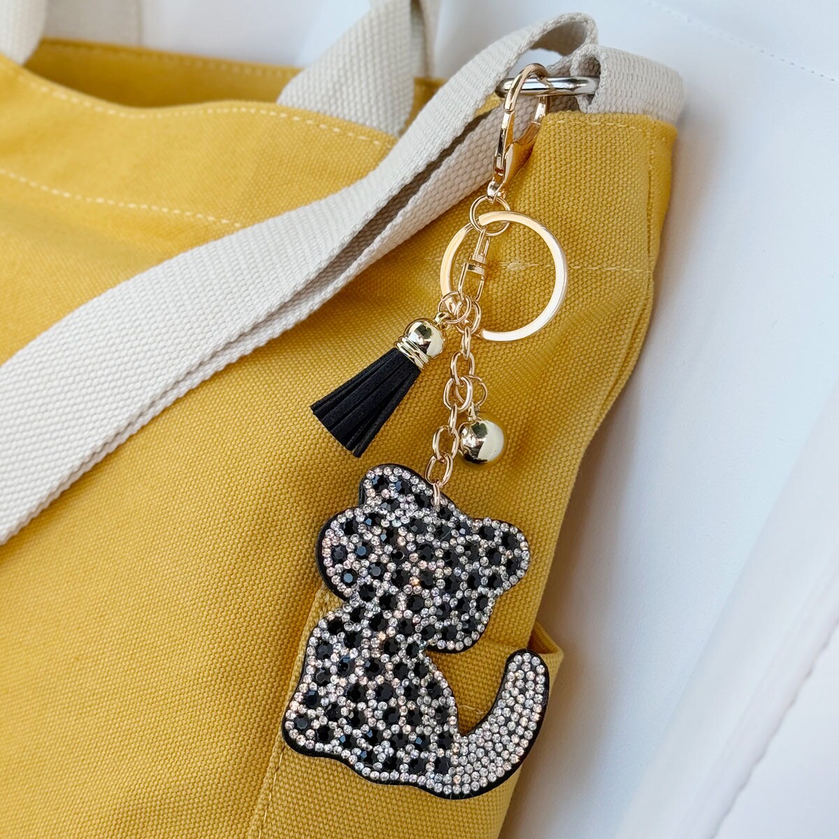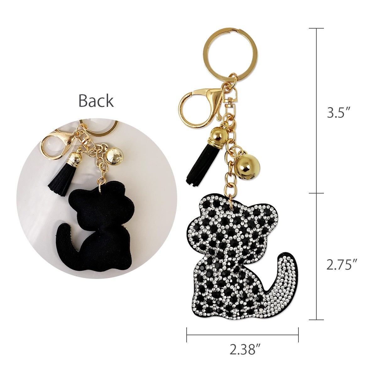 Wrapables Crystal Bling Key Chain Keyring with Tassel Car Purse Handbag Pendant, Exotic Cat