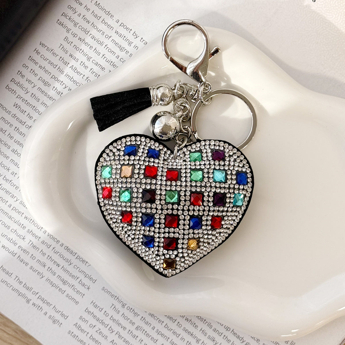 Wrapables Crystal Bling Key Chain Keyring with Tassel Car Purse Handbag Pendant, Rainbow Heart