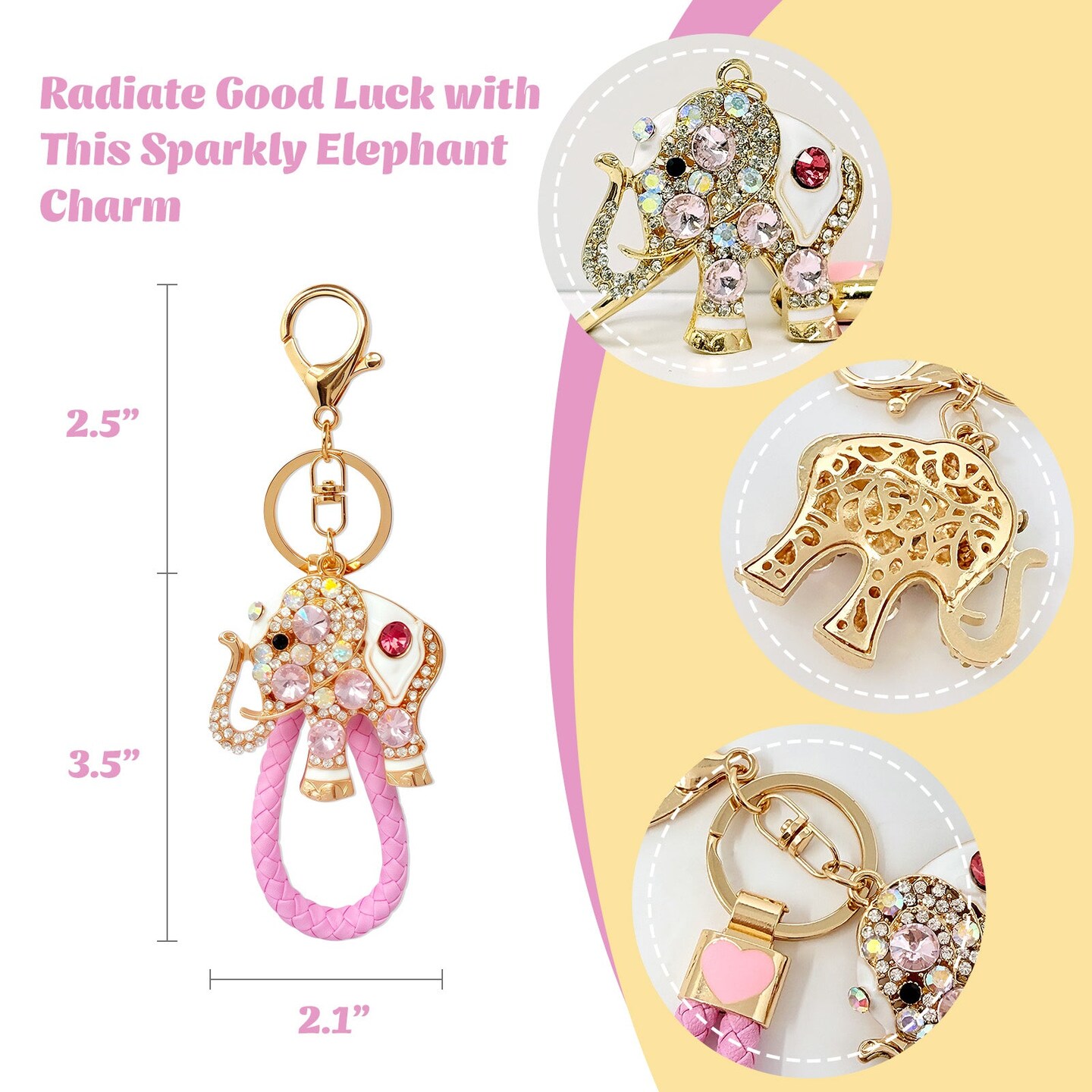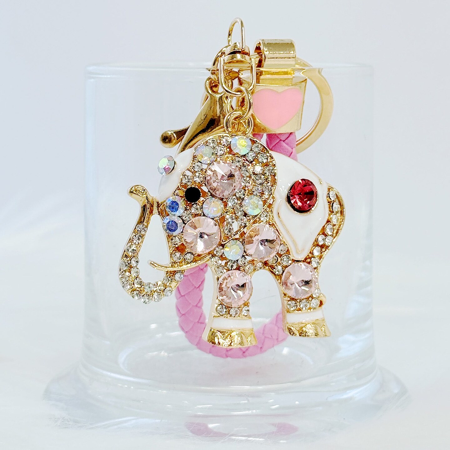 Wrapables Crystal Bling Keychain, Keyring Purse Handbag Pendant Charm, Pink Elephant