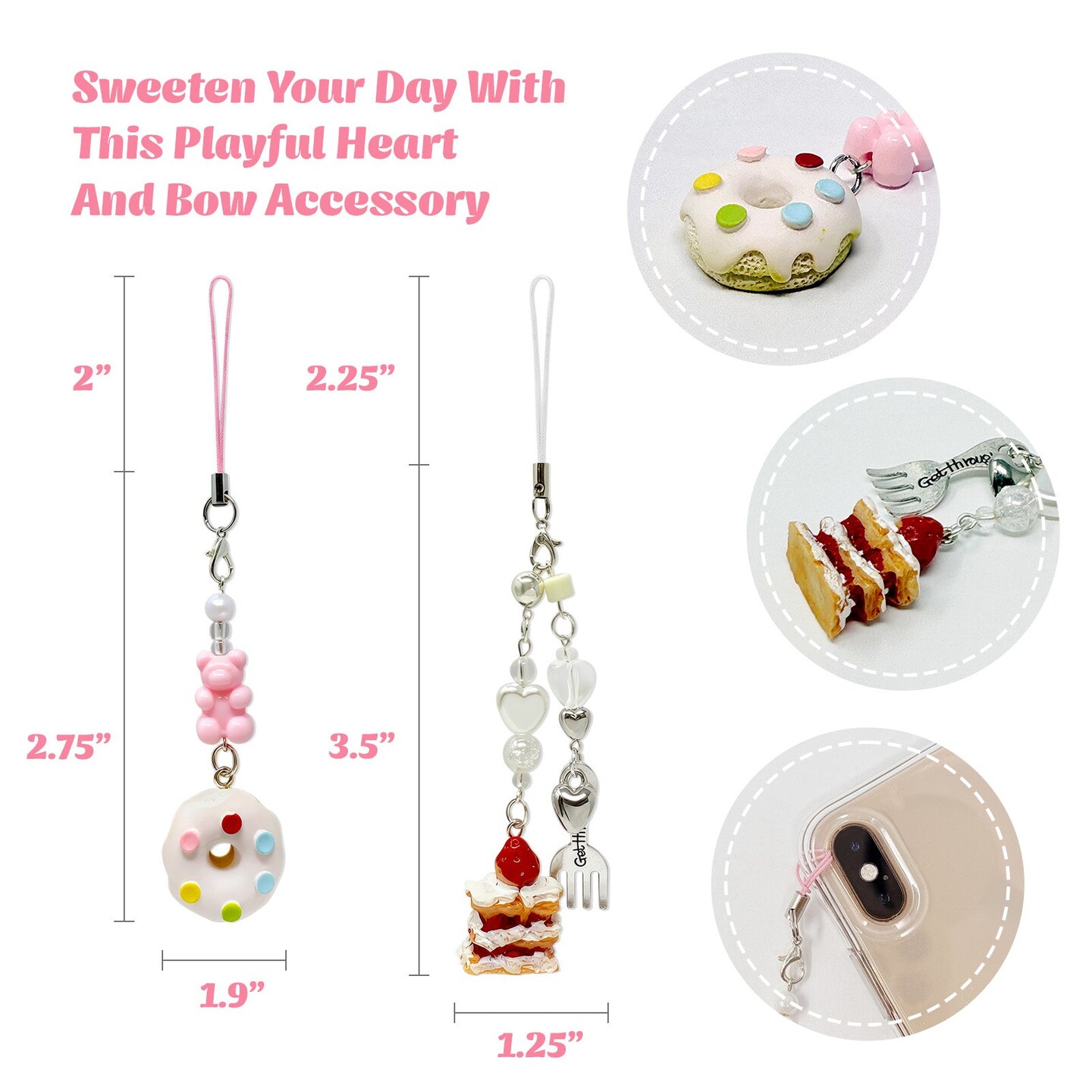 Wrapables Cute Aesthetic Y2K Cell Phone Charms, Accessories for Keychain Handbag Pendant (Set of 2), Sweet Treats