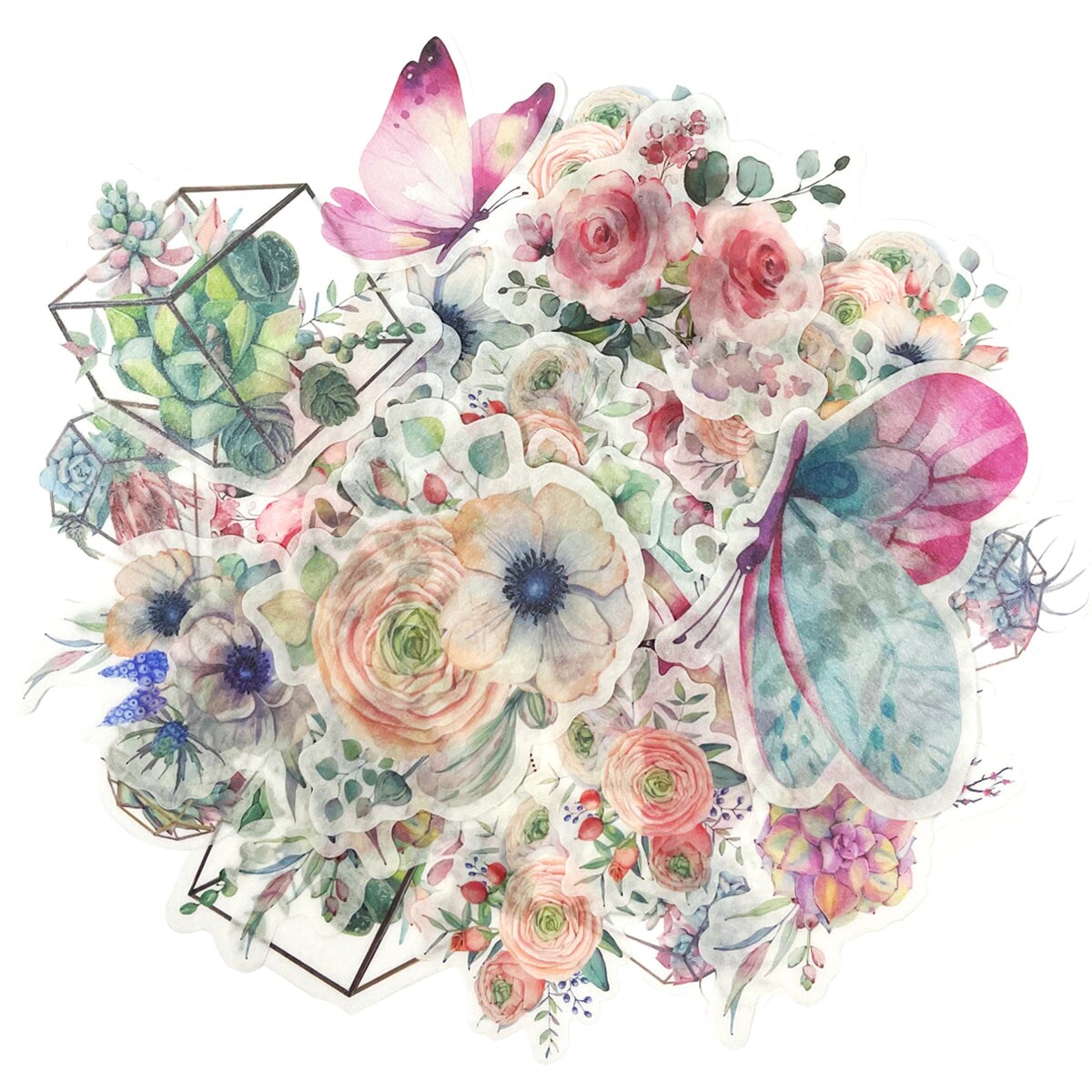 Wrapables Decorative Scrapbooking Washi Stickers, DIY Crafts for Stationery, Diary, Card Making (60 pcs)