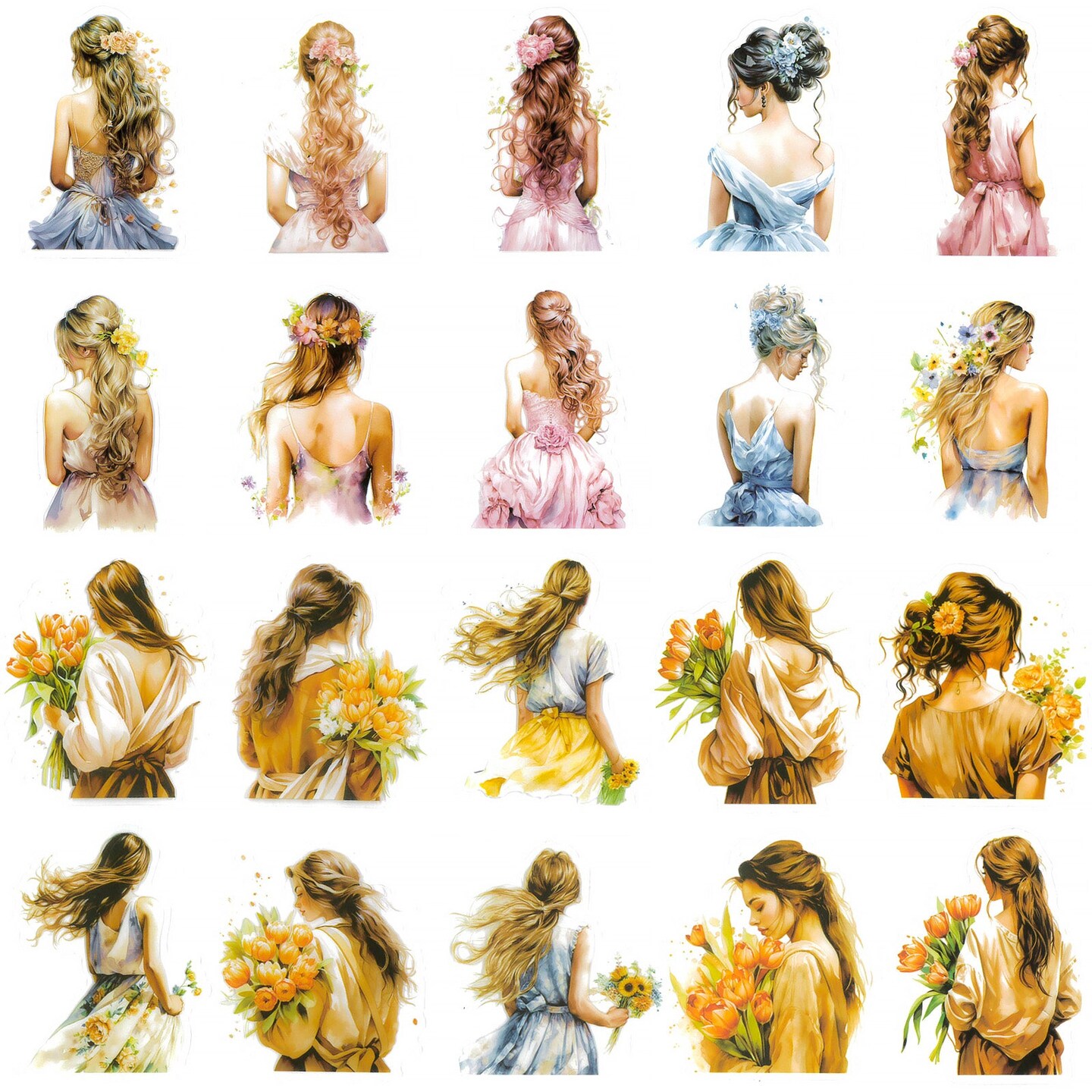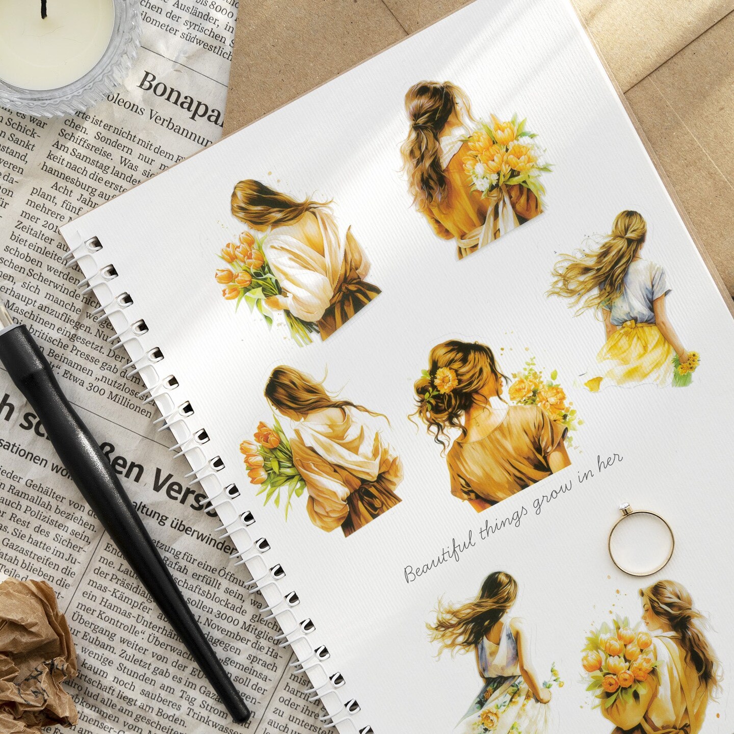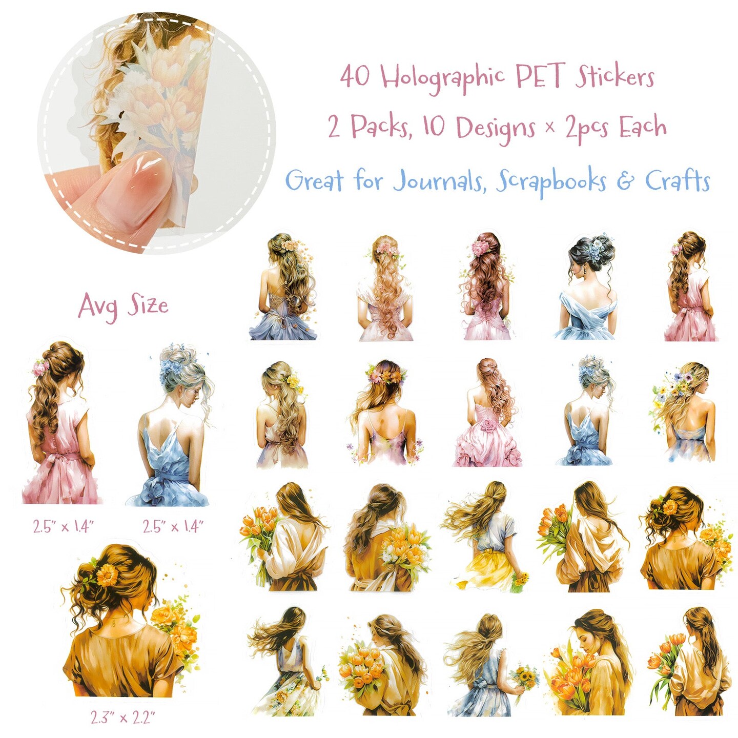 Wrapables Floral Fashion Women PET Scrapbooking Stickers for Junk Journals, Stationery, Card Making, DIY, Arts and Crafts, Water Bottles, Phones, Laptops (40pcs), Bouquet and Crown