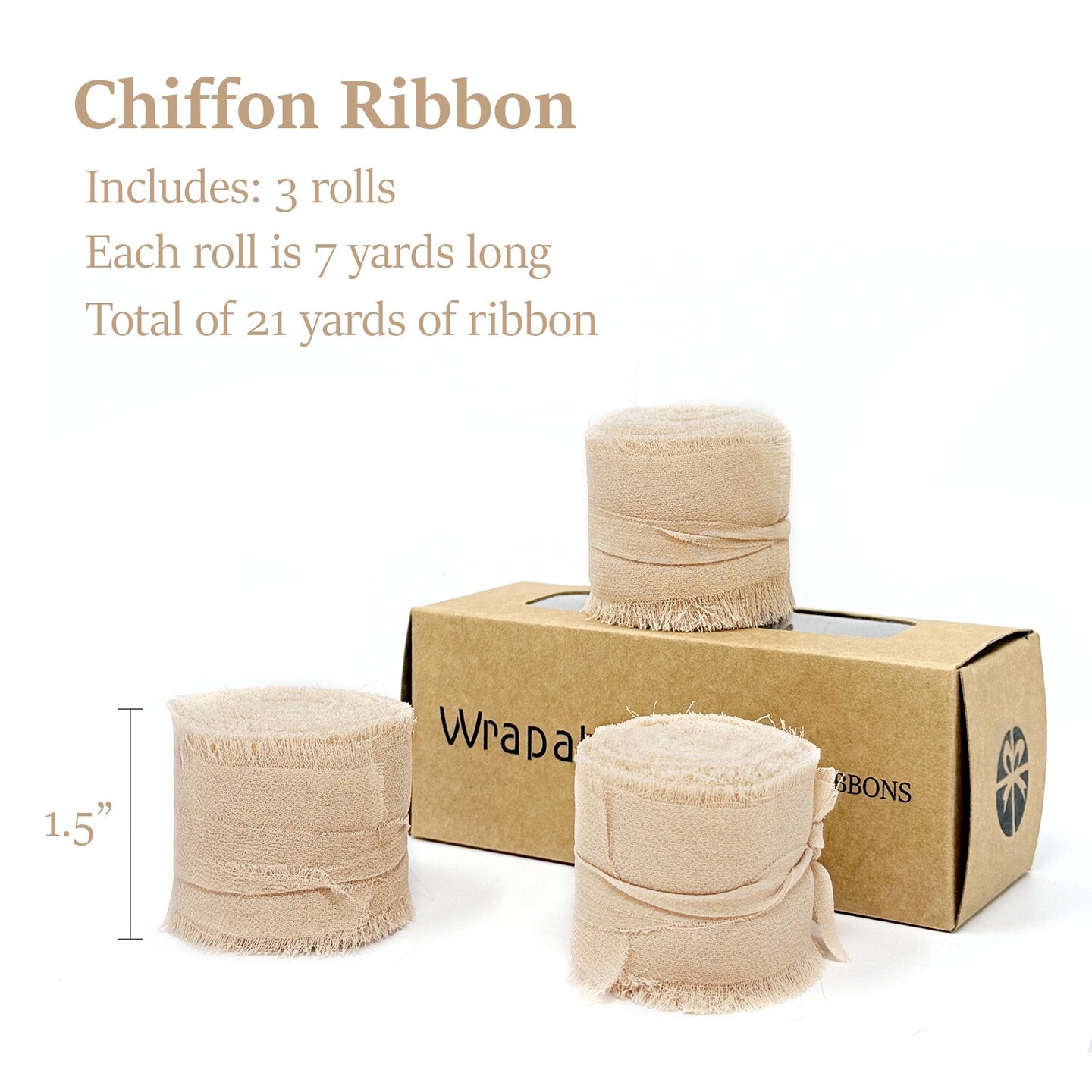 Wrapables Fringe Chiffon Ribbons, 1.5 Inch x 7 Yd Frayed Edges Chiffon Ribbons for Wedding Invitations, Bridal Bouquet, Gift Wrapping, DIY Arts & Crafts (Set of 3), Khaki
