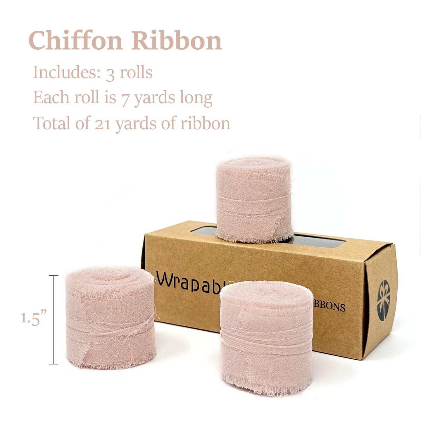 Wrapables Fringe Chiffon Ribbons, 1.5 Inch x 7 Yd Frayed Edges Chiffon Ribbons for Wedding Invitations, Bridal Bouquet, Gift Wrapping, DIY Arts & Crafts (Set of 3), Light Pink