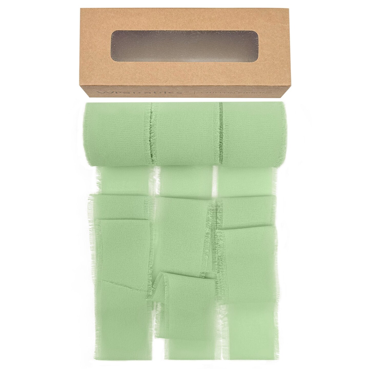 Wrapables Fringe Chiffon Ribbons, 1.5 Inch x 7 Yd Frayed Edges Chiffon Ribbons for Wedding Invitations, Bridal Bouquet, Gift Wrapping, DIY Arts & Crafts (Set of 3), Mint Green