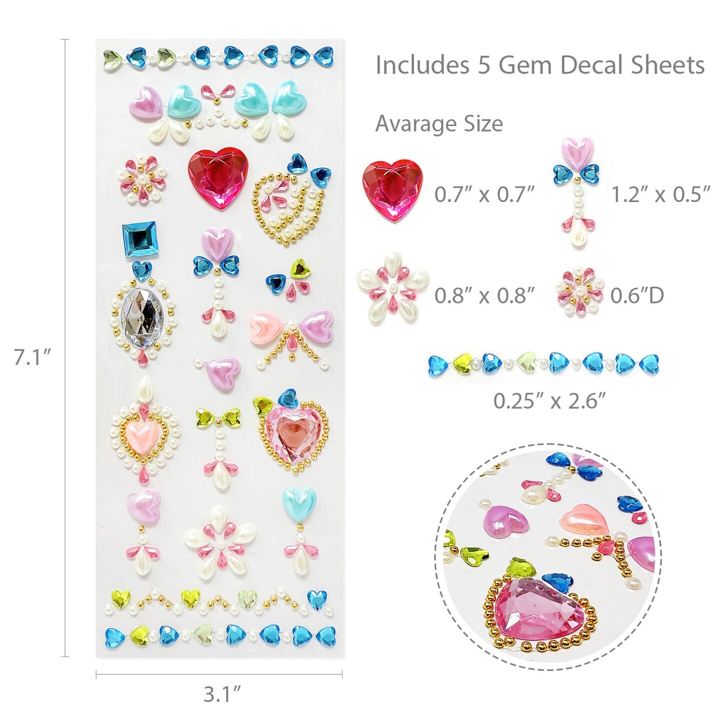 Wrapables Hearts and Jewels Acrylic Crystal Rhinestone Gem Stickers for DIY Arts & Crafts (5 Sheets)