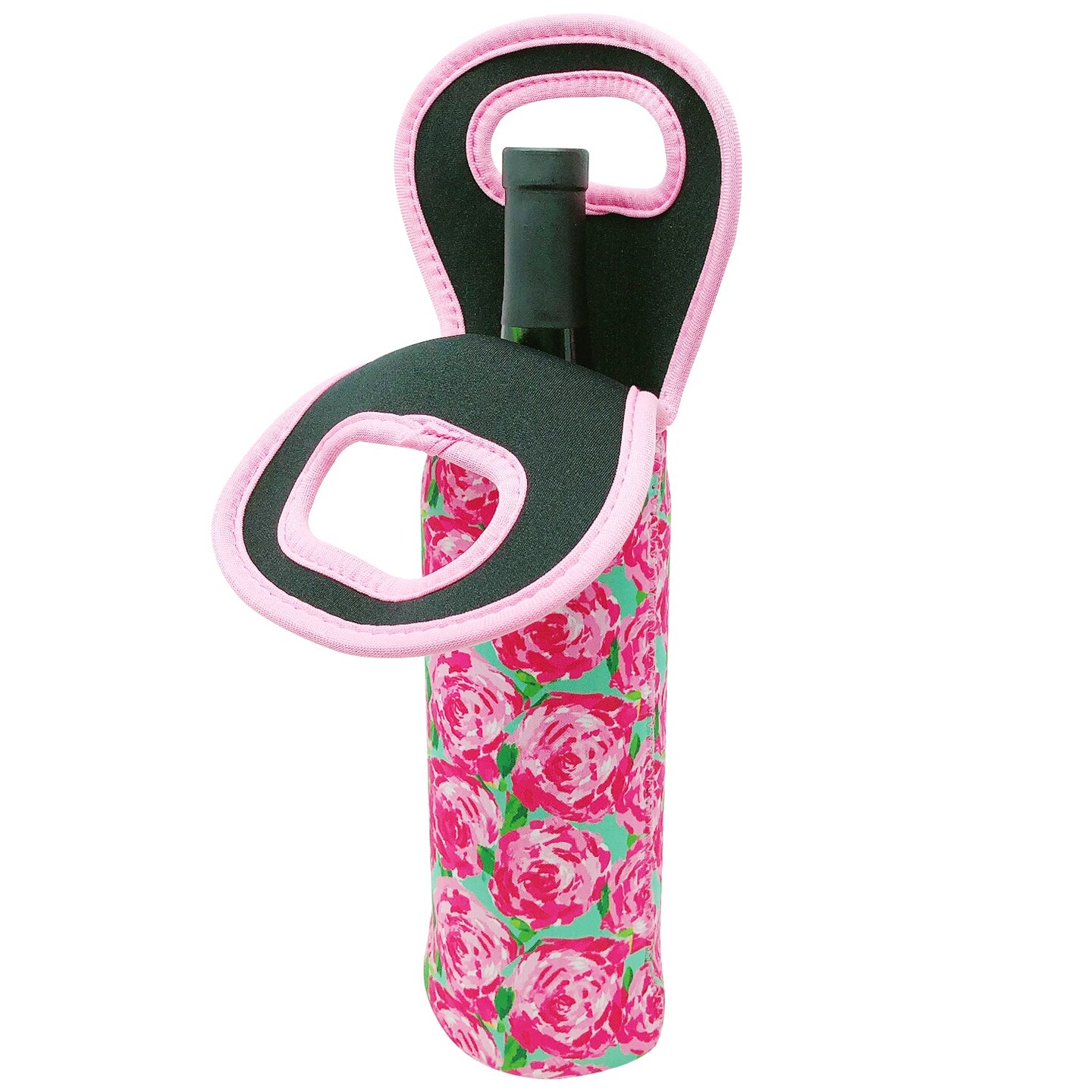 Wrapables Insulated Neoprene Wine Tote, One Bottle / Pink Roses