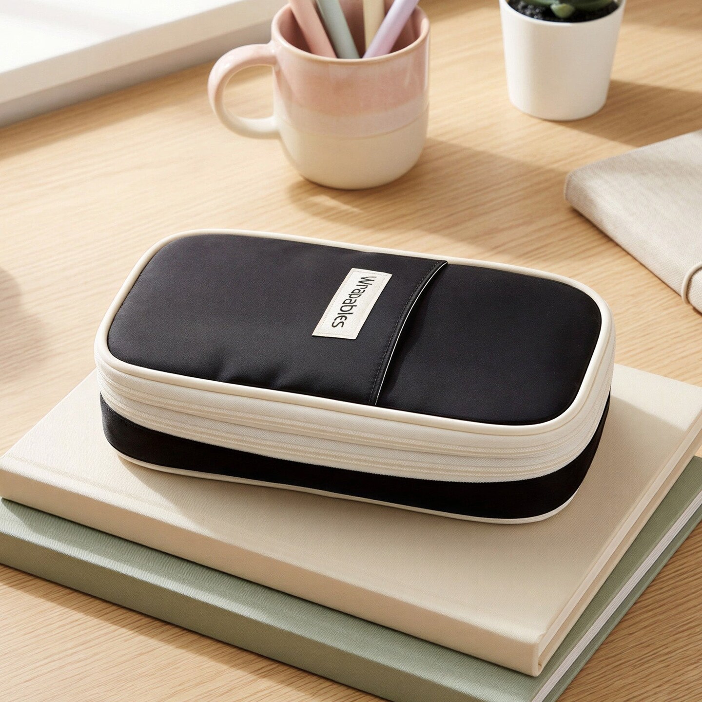 Wrapables Large Capacity Pencil Case, Expandable Pencil Pouch for Stationery Tools, Black