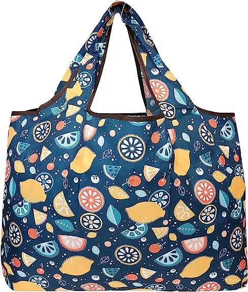 Wrapables Large Foldable Tote Nylon Reusable Grocery Bag, 3 Pack